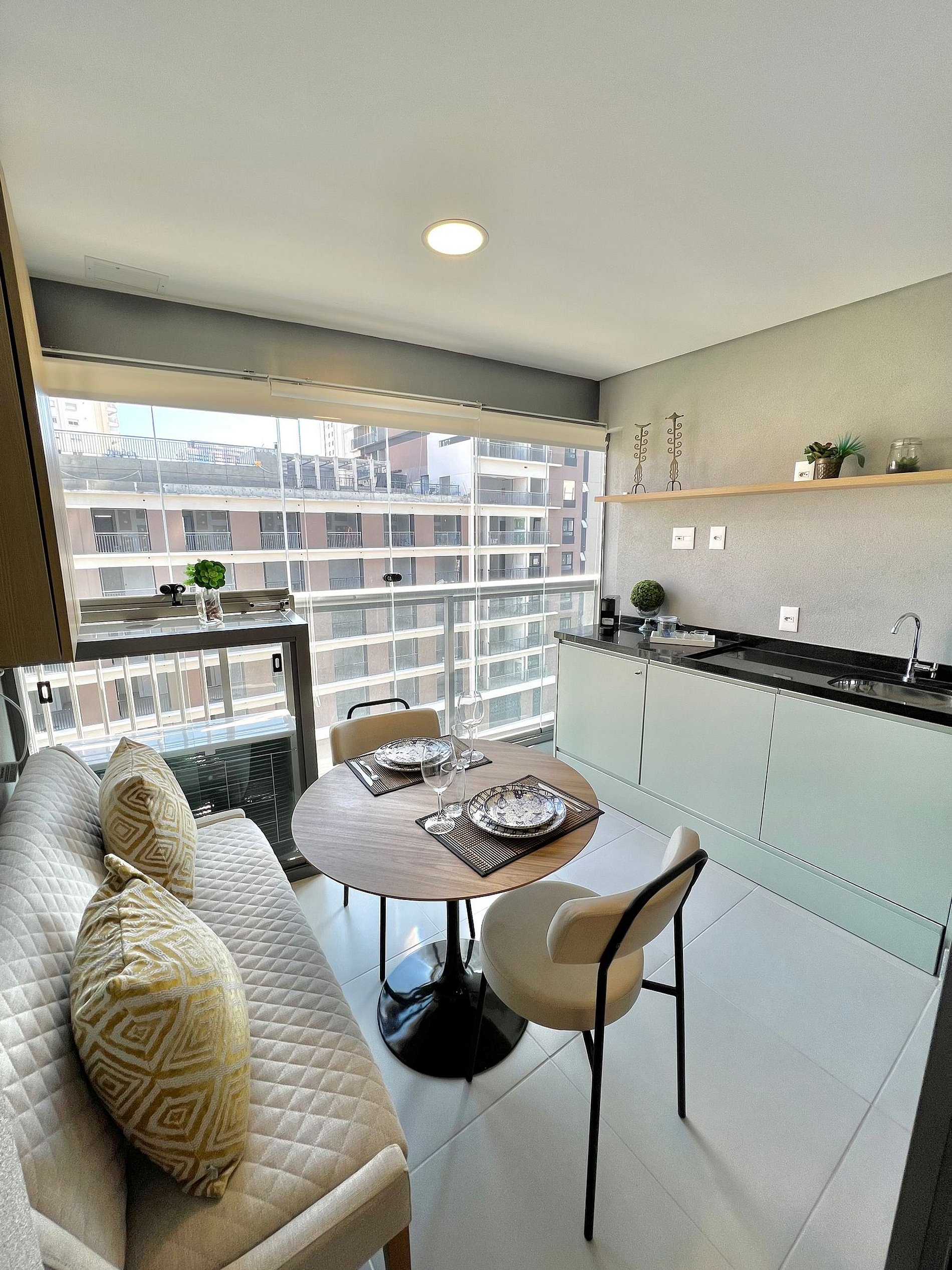 Vista privilegiada do skyline de São Paulo, a apenas 4 minutos a pé da Estação Brooklin (Linha 5‑Lilás). Apartamento moderno, totalmente mobiliado, com piscinas, academia, coworking e rooftop.