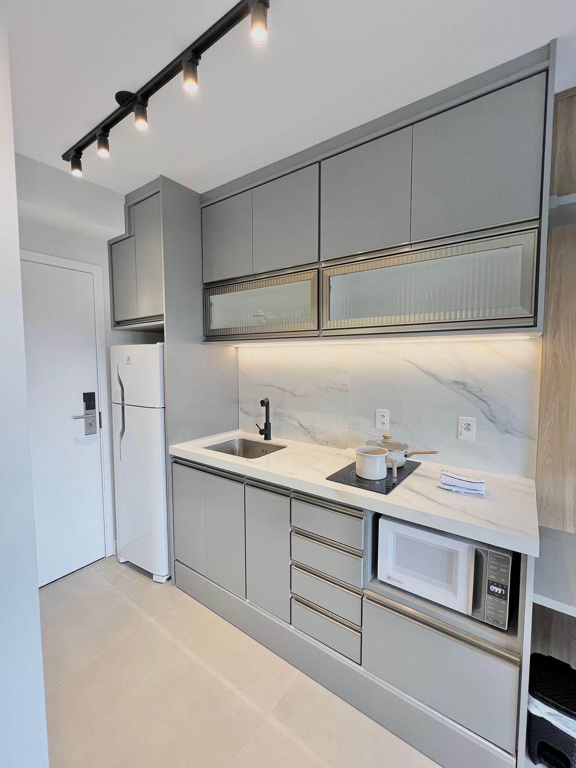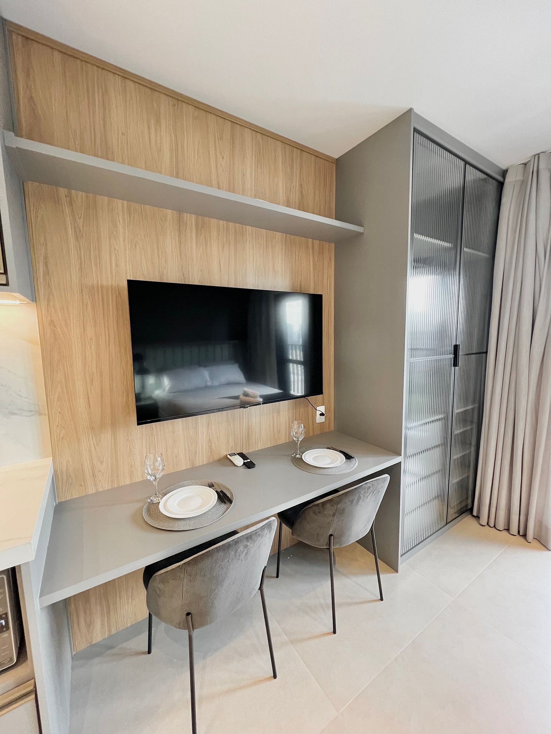 Apartamento completo, possui todos os utensílios de cozinha, roupa de cama e marcenaria planejada, tudo pensado para o seu conforto durante a hospedagem.