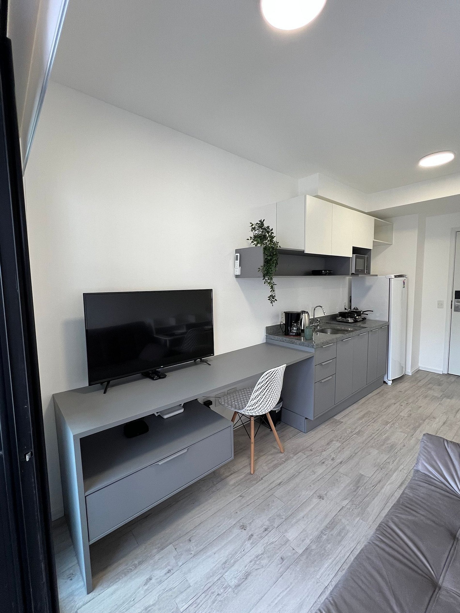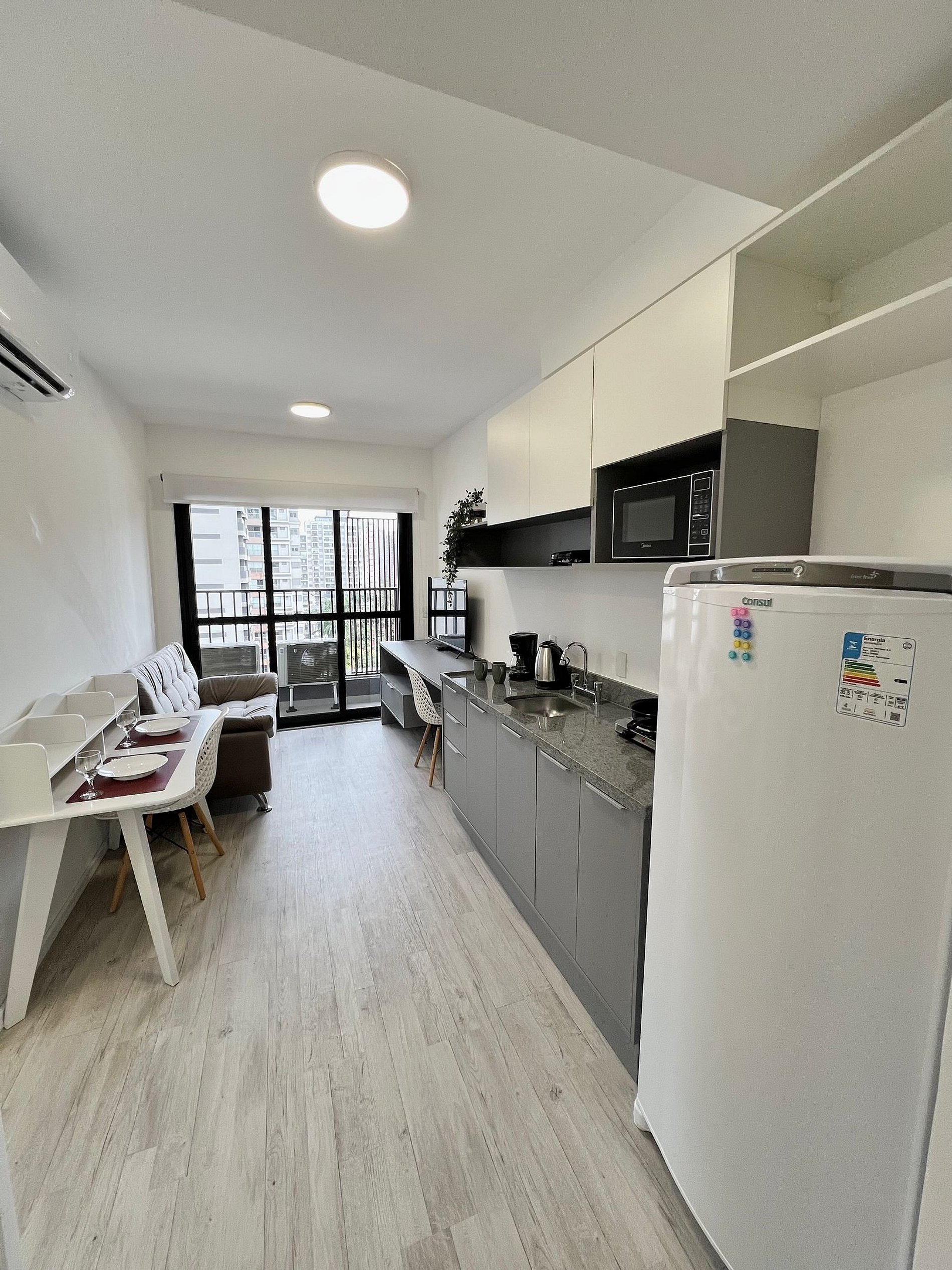 Apartamento completo, possui todos os utensílios de cozinha, roupa de cama e marcenaria planejada, tudo pensado para o seu conforto durante a hospedagem.