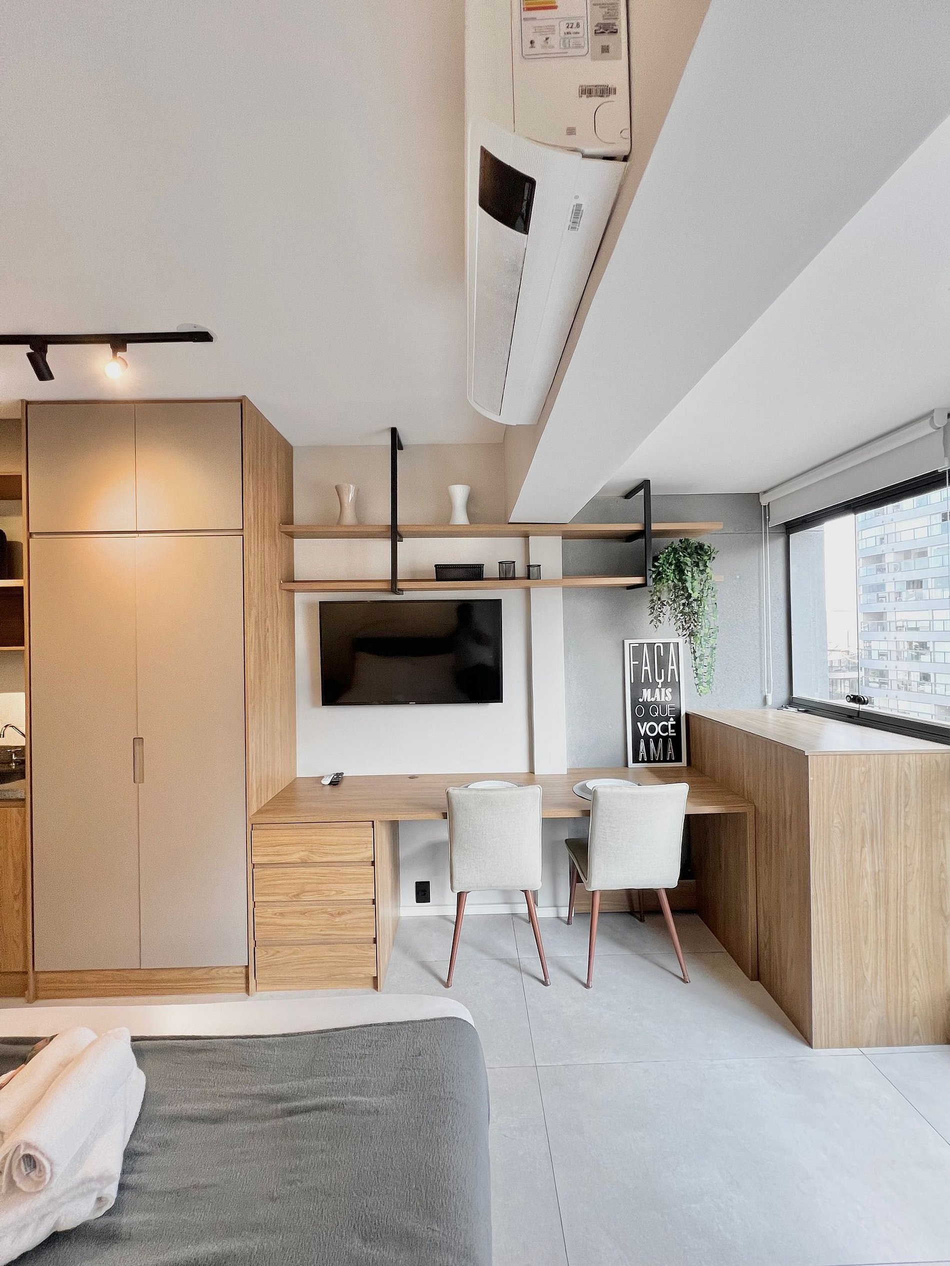 Ubicado en un condominio con infraestructura de ocio, nuestro estudio es una excelente opción para aquellos que buscan comodidad y confort. Está situado en una ubicación privilegiada cerca del metro Brooklin, el centro comercial Morumbi y el aeropuerto de Congonhas, siendo ideal para aquellos que desean explorar más de la ciudad mientras trabajan.