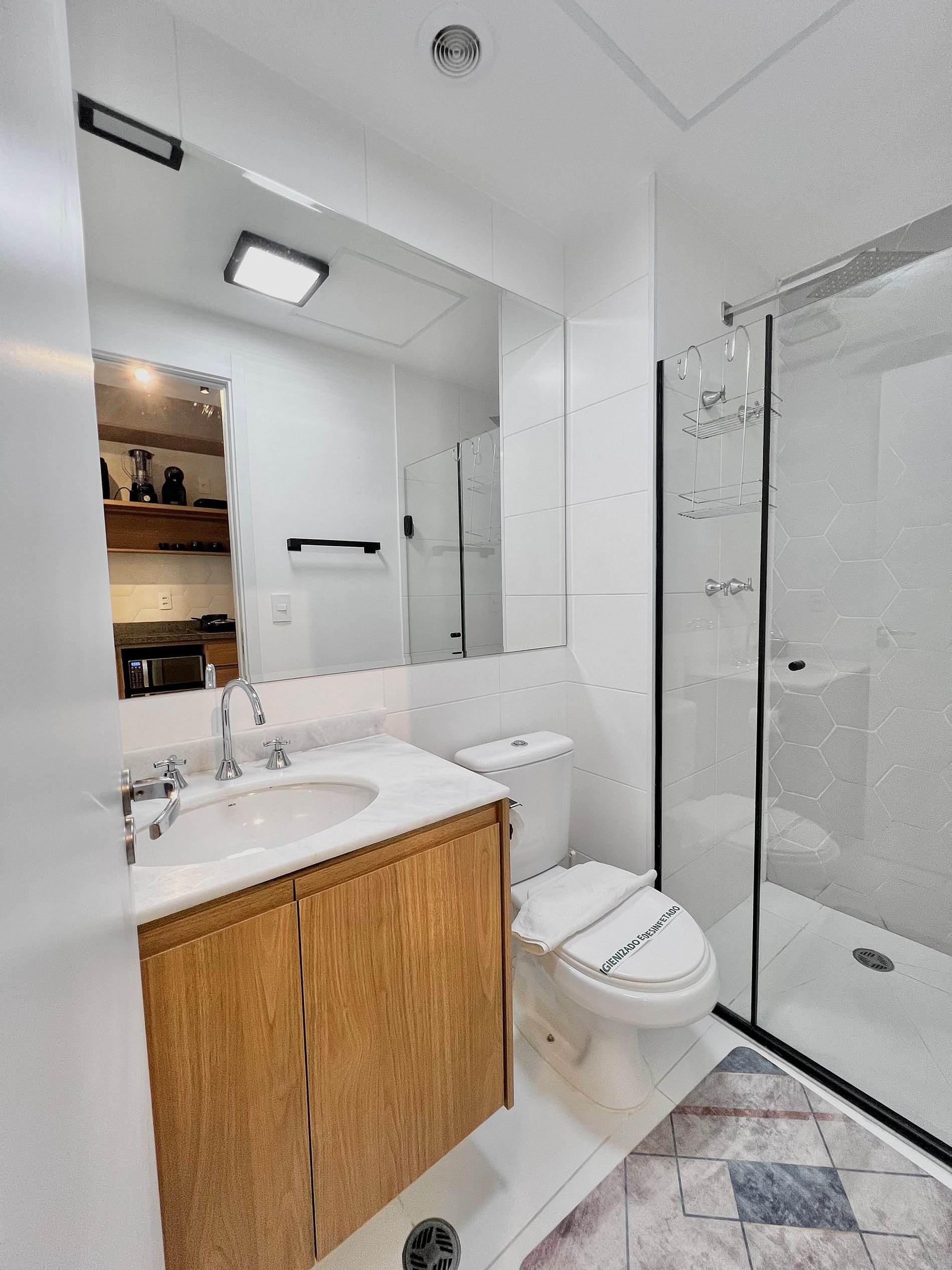O hóspede têm acesso total as áreas de lazer do prédio, sendo a infraestrutura do condomínio completa, com piscina, academia, coworking e wi-fi nas áreas comuns. O condomínio dispõe de lavanderia self-service OMO para lavagem e secagem (valores a parte e pagos diretamente pelo app). A acomodação dispõe de internet wi-fi fibra (alta velocidade), enxoval completo, smart TV, bancada para home office, cooktop, micro-ondas, geladeira, utensílios de cozinha, cafeteira elétrica, sanduicheira/grill, secador de cabelo, ar-condicionado, cortina blackout. O prédio não possui vaga de garagem.