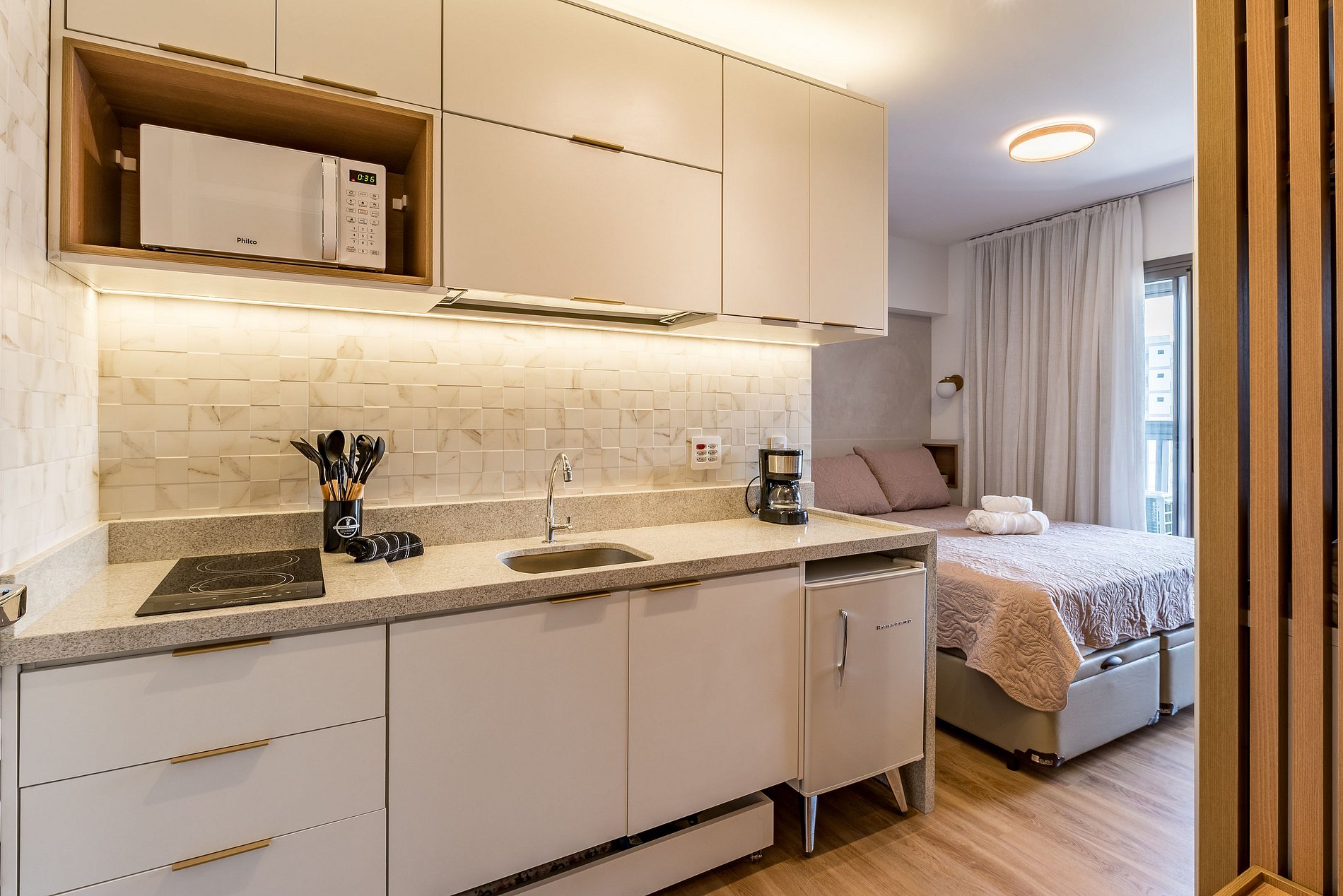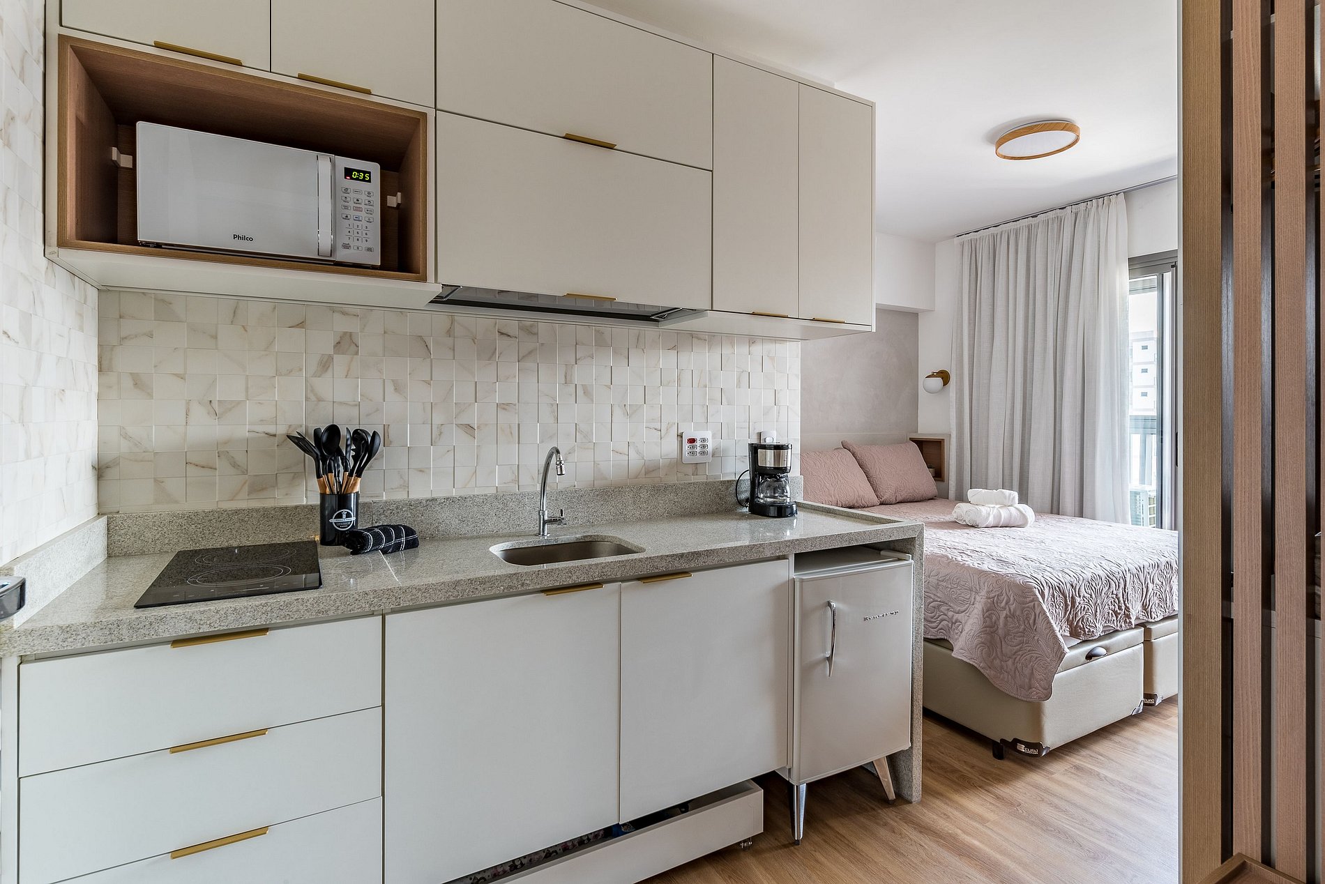 Cozinha compacta completa com micro-ondas