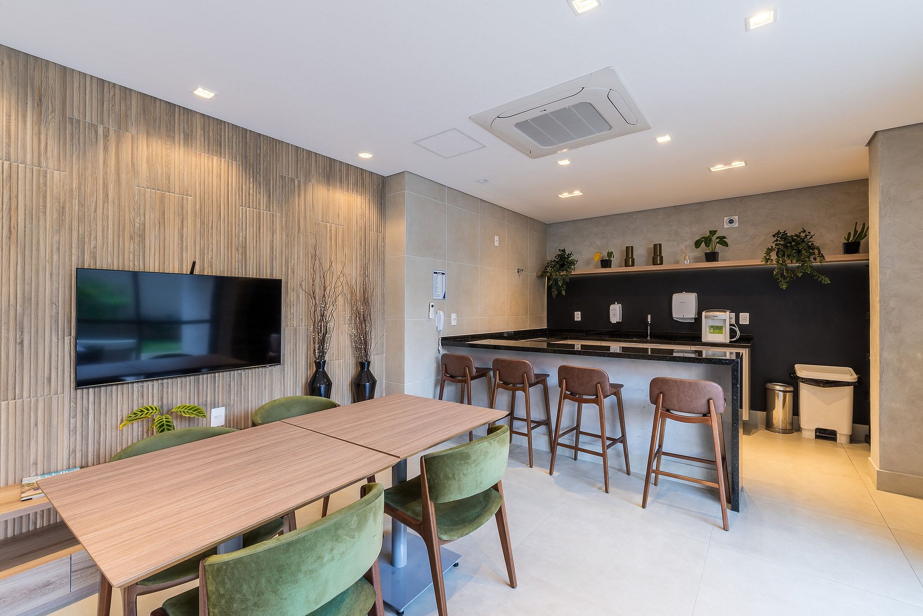 Condomínio moderno com acesso por senhas e cadastros remotos.