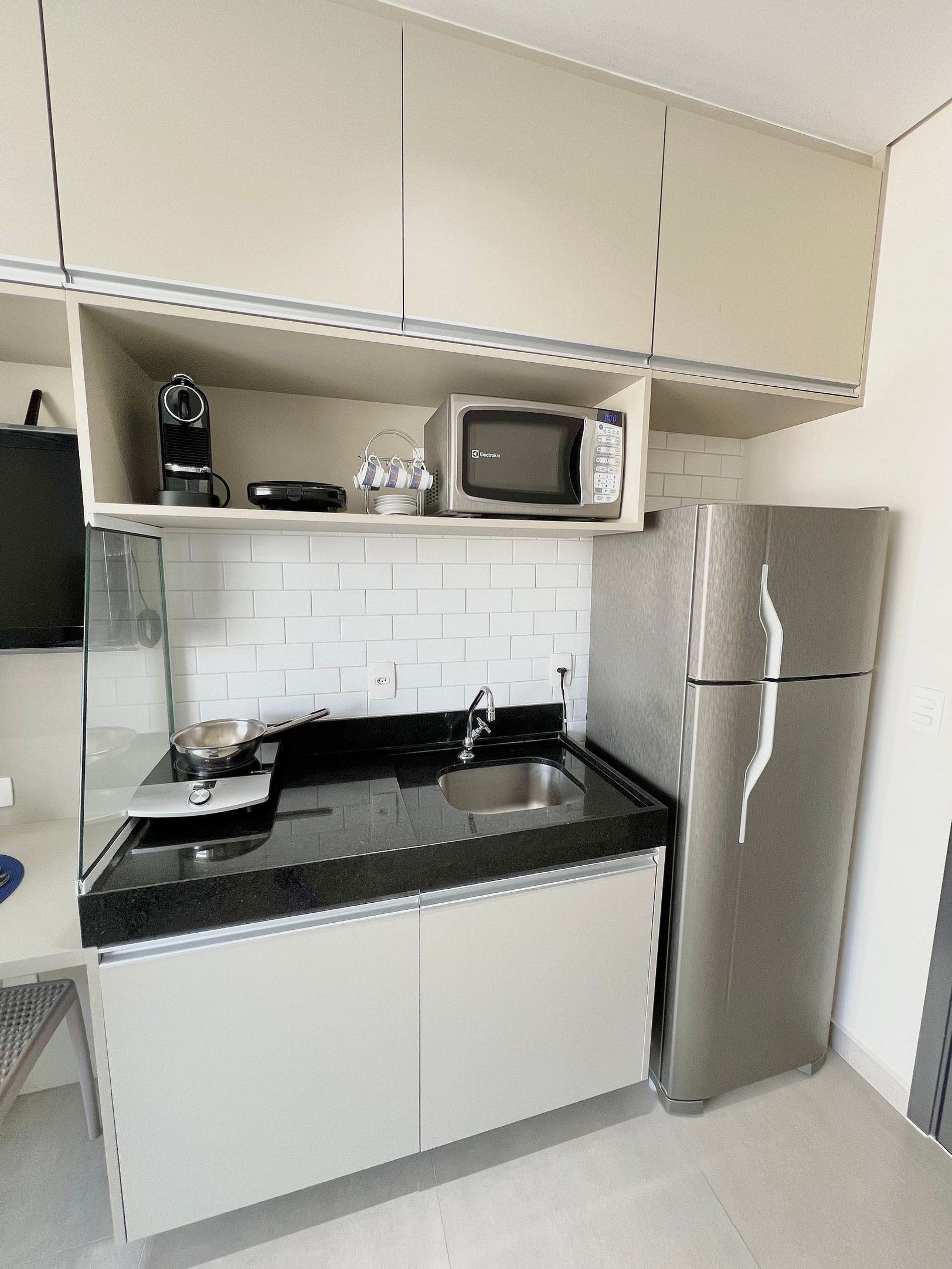 Cozinha equipada (geladeira, micro-ondas, cooktop, utensílios completos)