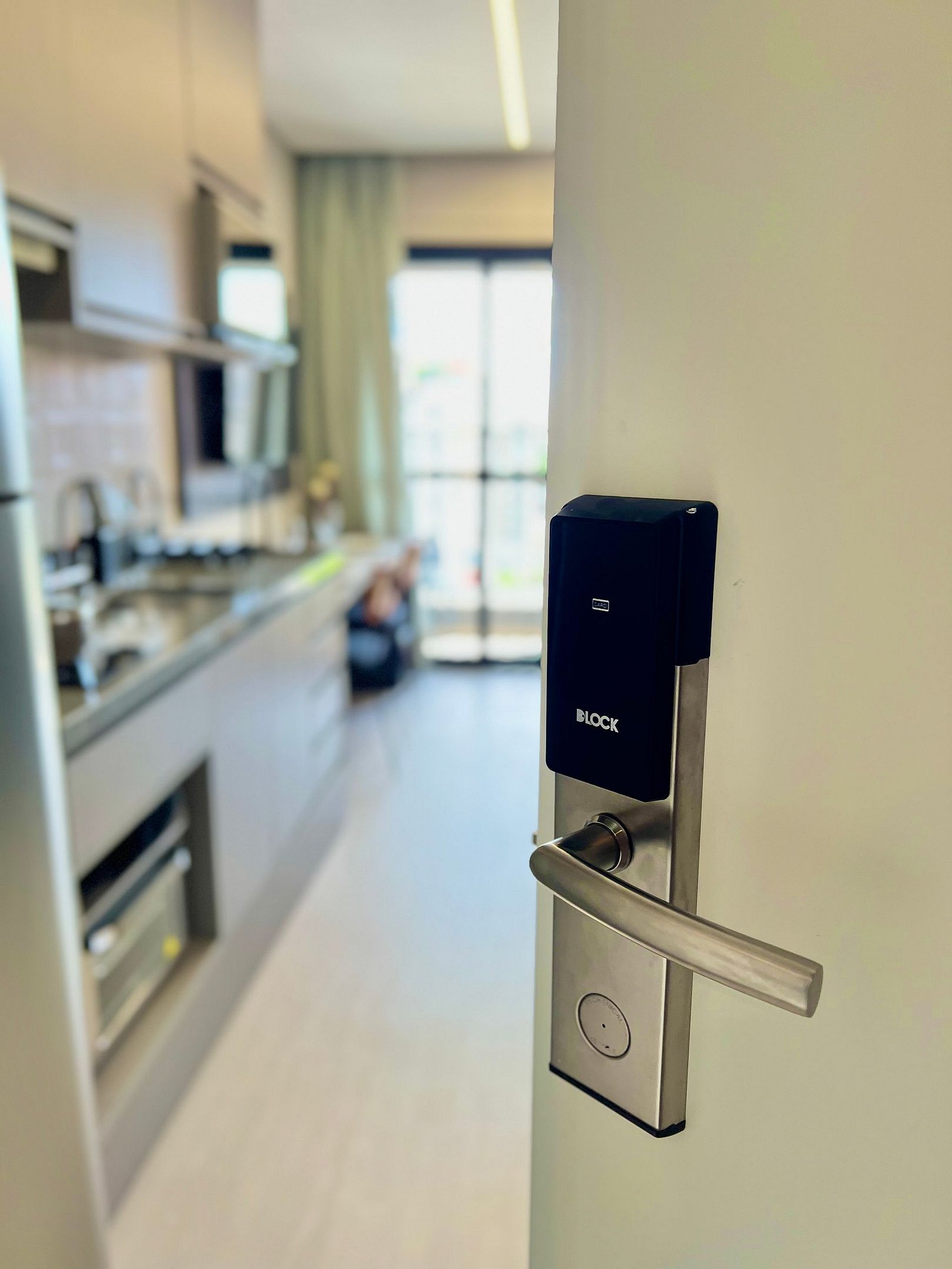 Condomínio moderno com acesso por senhas e cadastros remotos.