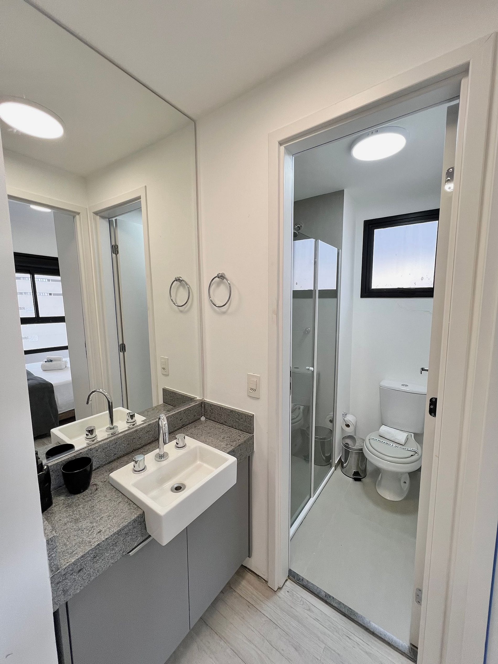 Apartamento completo, possui todos os utensílios de cozinha, roupa de cama e marcenaria planejada, tudo pensado para o seu conforto durante a hospedagem.
