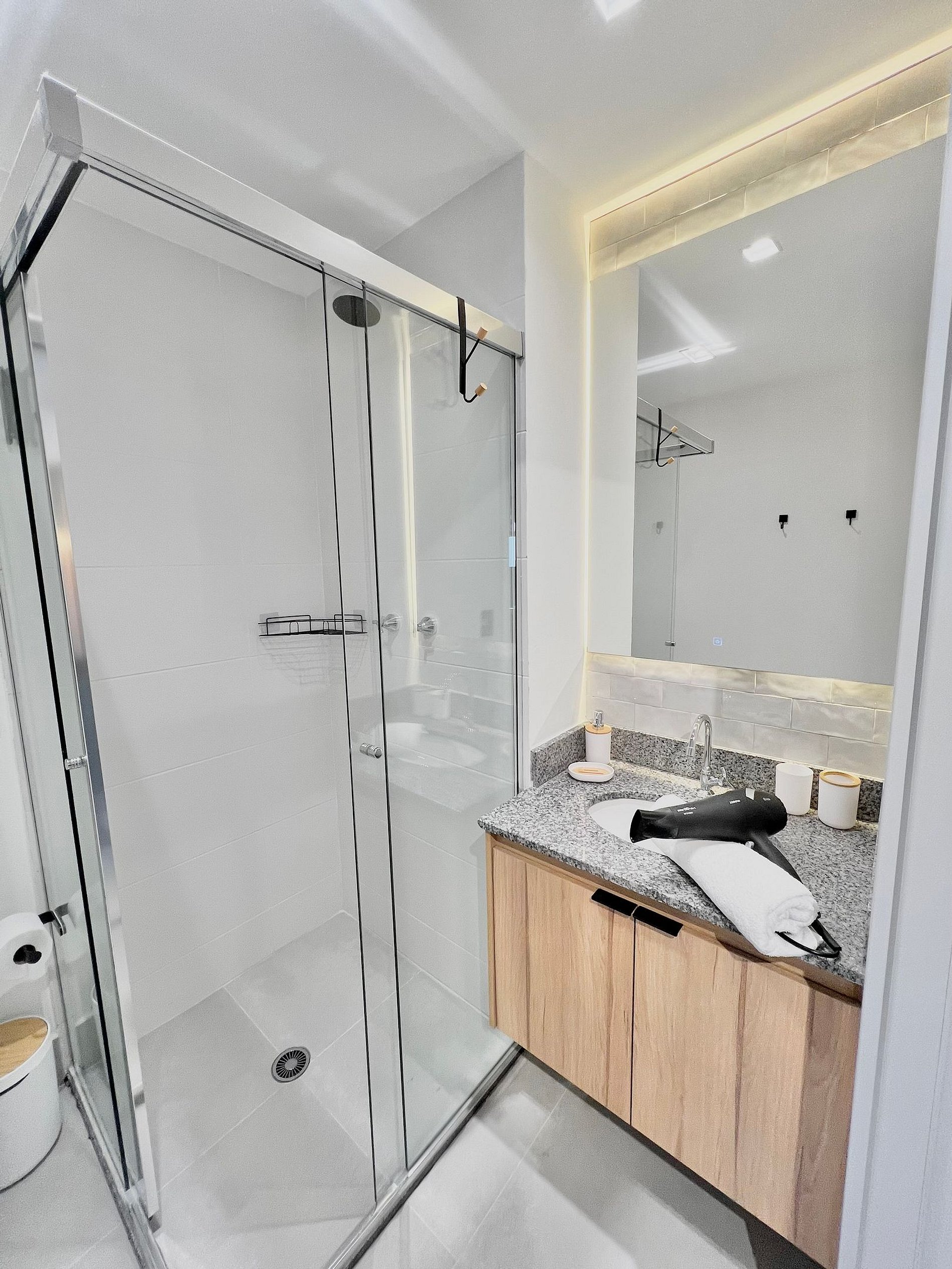 Apartamento completo, pronto para sua estadia com muito conforto e segurança, prédio moderno, com câmeras e acesso via cadastros registrados previamente.