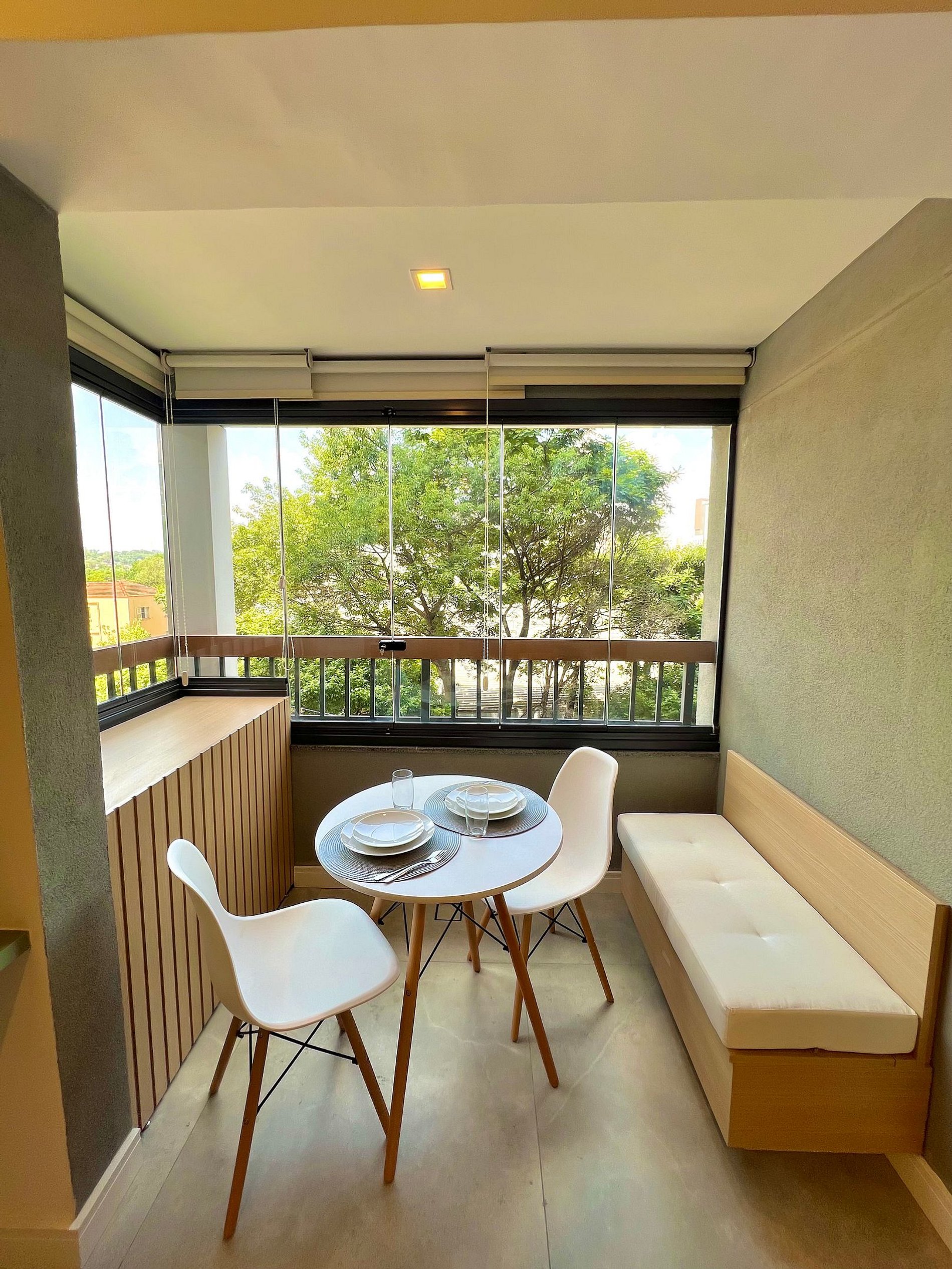 A acomodação dispõe de internet wi-fi fibra, enxoval completo, smart TV, espaço para home office, sala de estar com sofá, cooktop, micro-ondas, geladeira, utensílios de cozinha, cafeteira elétrica, luminária para leitura, ar-condicionado e fechamento da sacada em vidro. O prédio não possui vaga de garagem. O hóspede têm acesso ao coworking e wi-fi nas áreas comuns. O condomínio dispõe de lavanderia self-service OMO para lavagem e secagem (valores a parte e pagos diretamente pelo app).