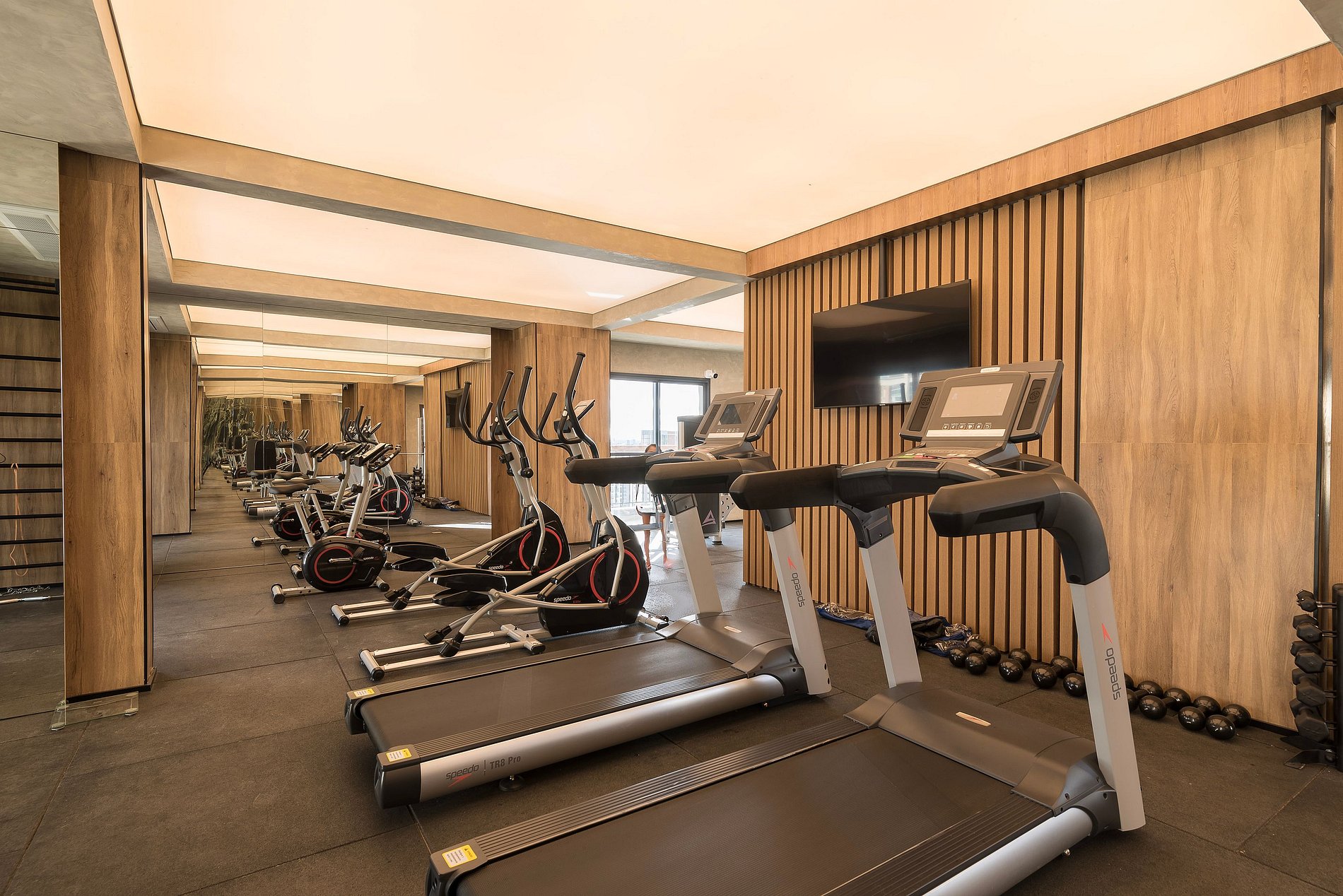 O condomínio também conta com academia completa e piscina na cobertura, compartilhado com os demais hóspedes.