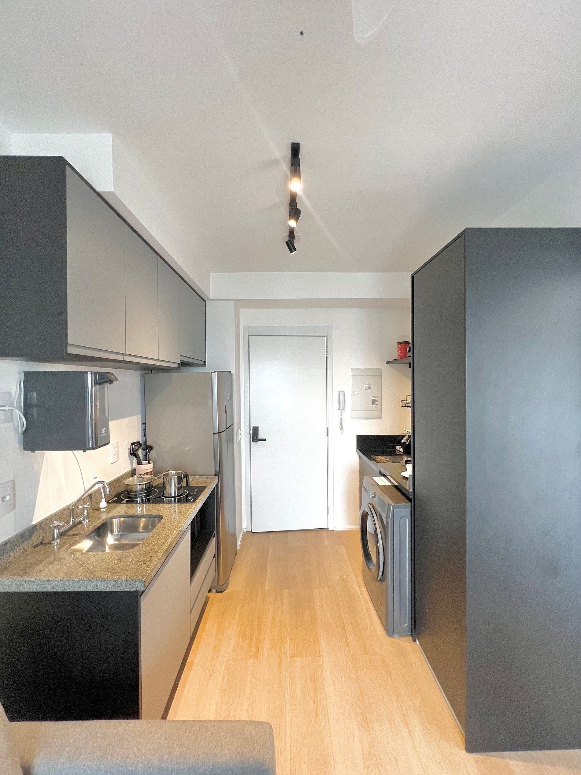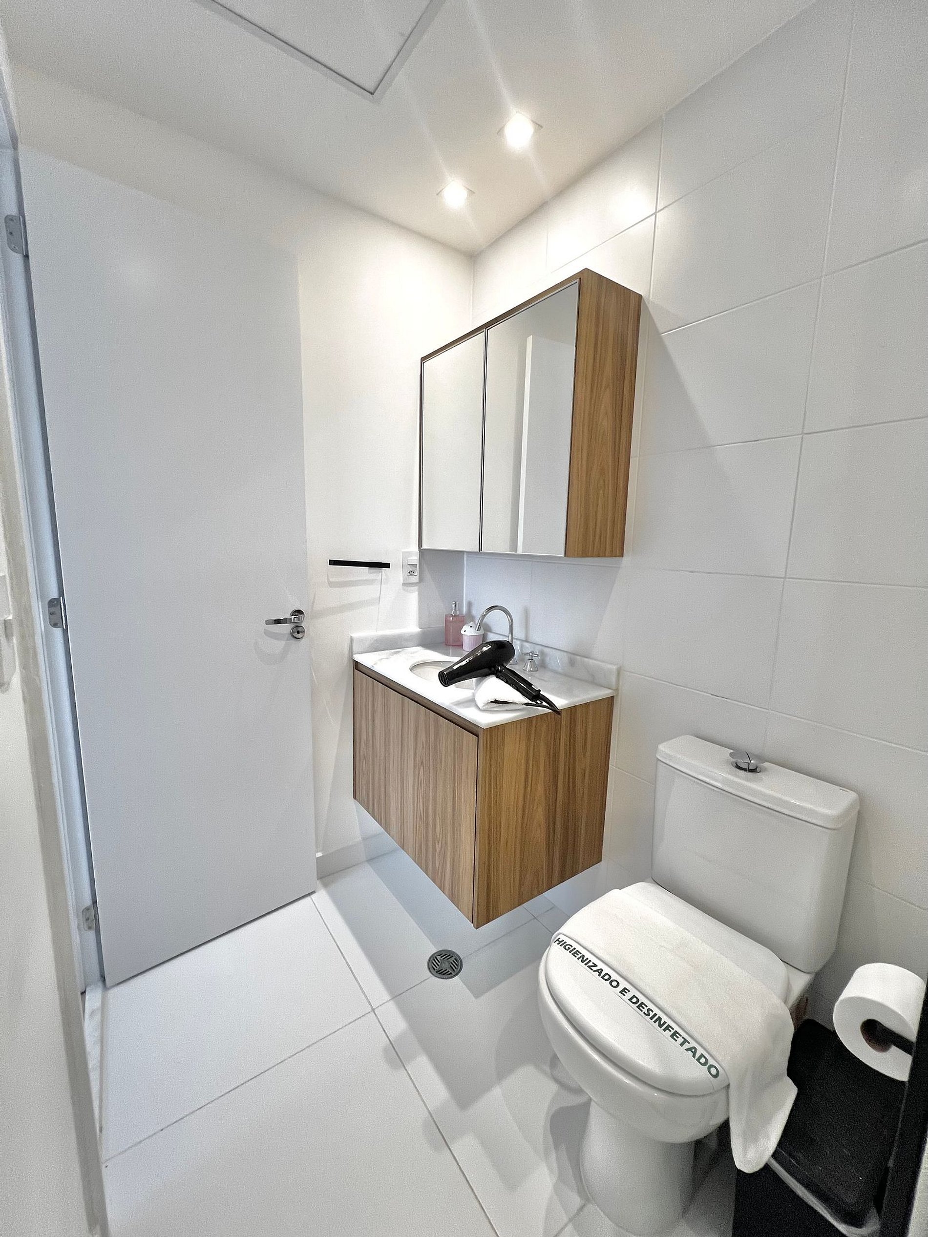O hóspede têm acesso total as áreas de lazer do prédio, sendo a infraestrutura do condomínio completa, com piscina, academia, coworking e wi-fi nas áreas comuns. O condomínio dispõe de lavanderia self-service OMO para lavagem e secagem (valores a parte e pagos diretamente pelo app). A acomodação dispõe de internet wi-fi fibra (alta velocidade), enxoval completo, smart TV, bancada para home office, cooktop, micro-ondas, geladeira, utensílios de cozinha, cafeteira elétrica, sanduicheira/grill, secador de cabelo, ar-condicionado, cortina blackout. O prédio não possui vaga de garagem.