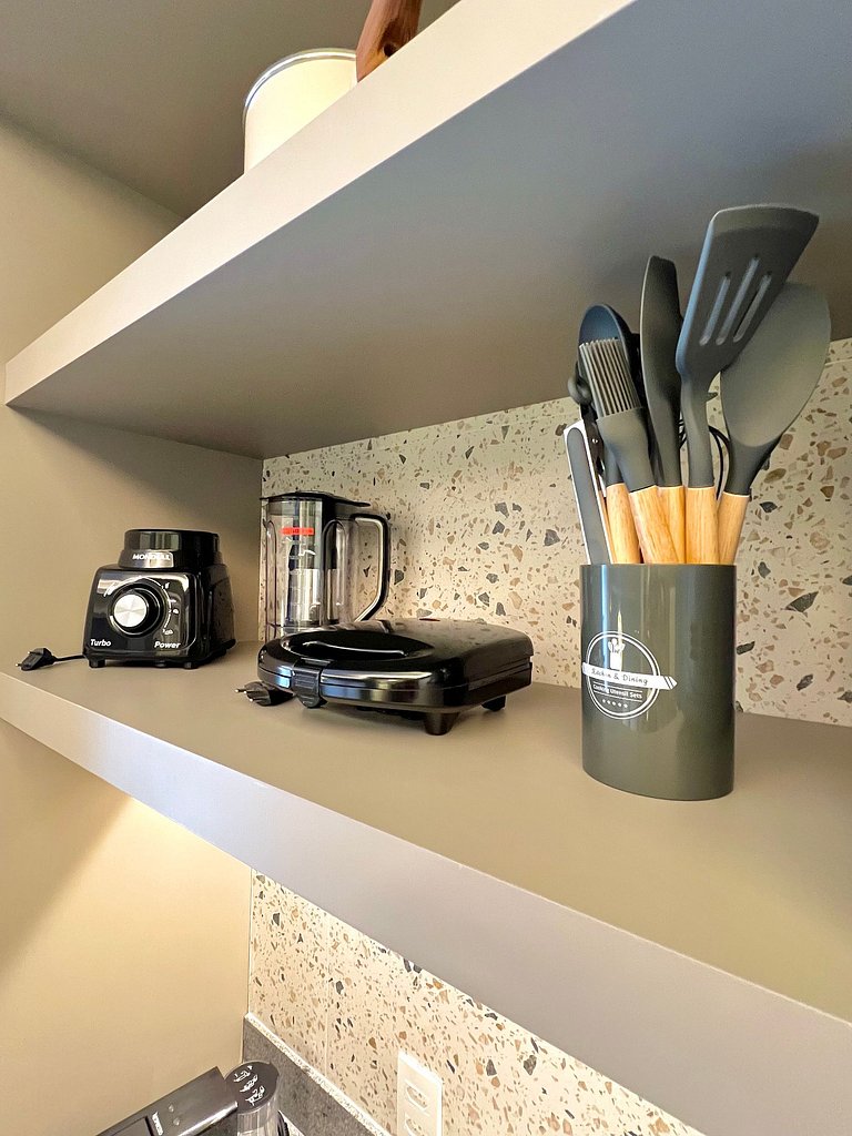 Apartamento completo, possui todos os utensílios de cozinha, roupa de cama e marcenaria planejada, tudo pensado para o seu conforto durante a hospedagem.
