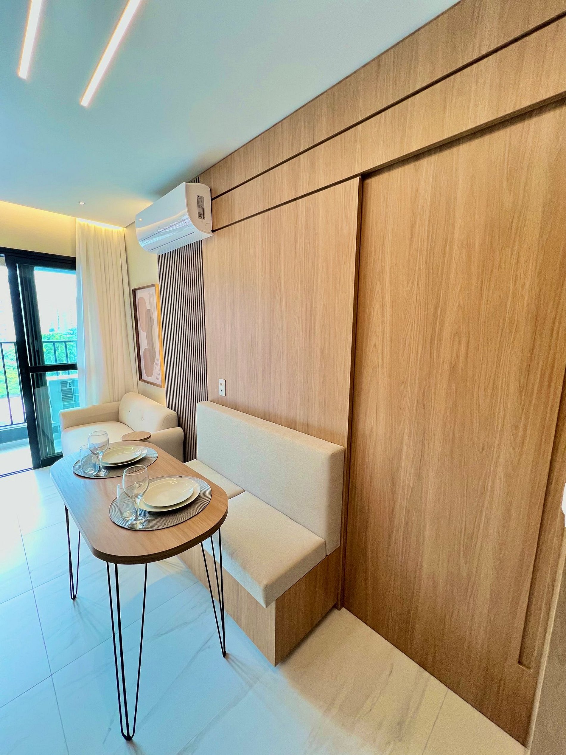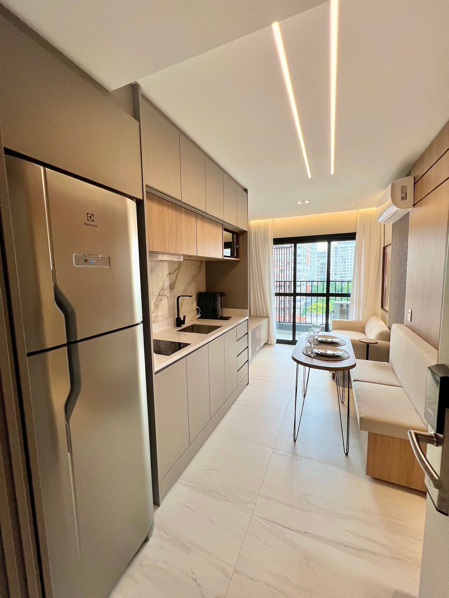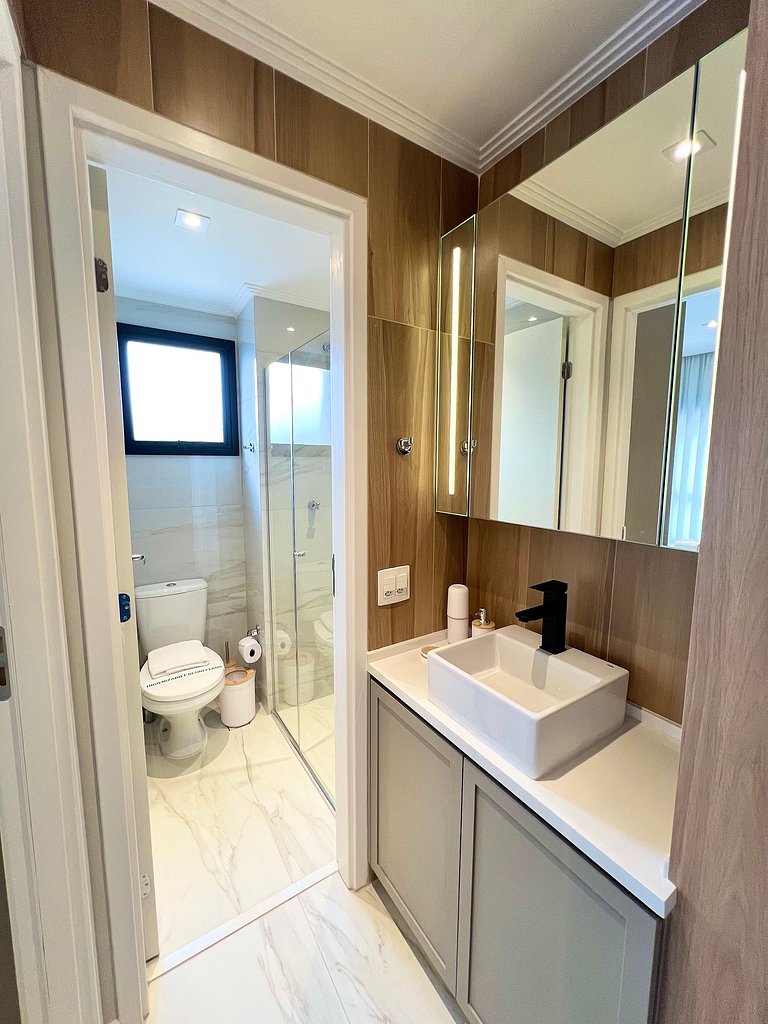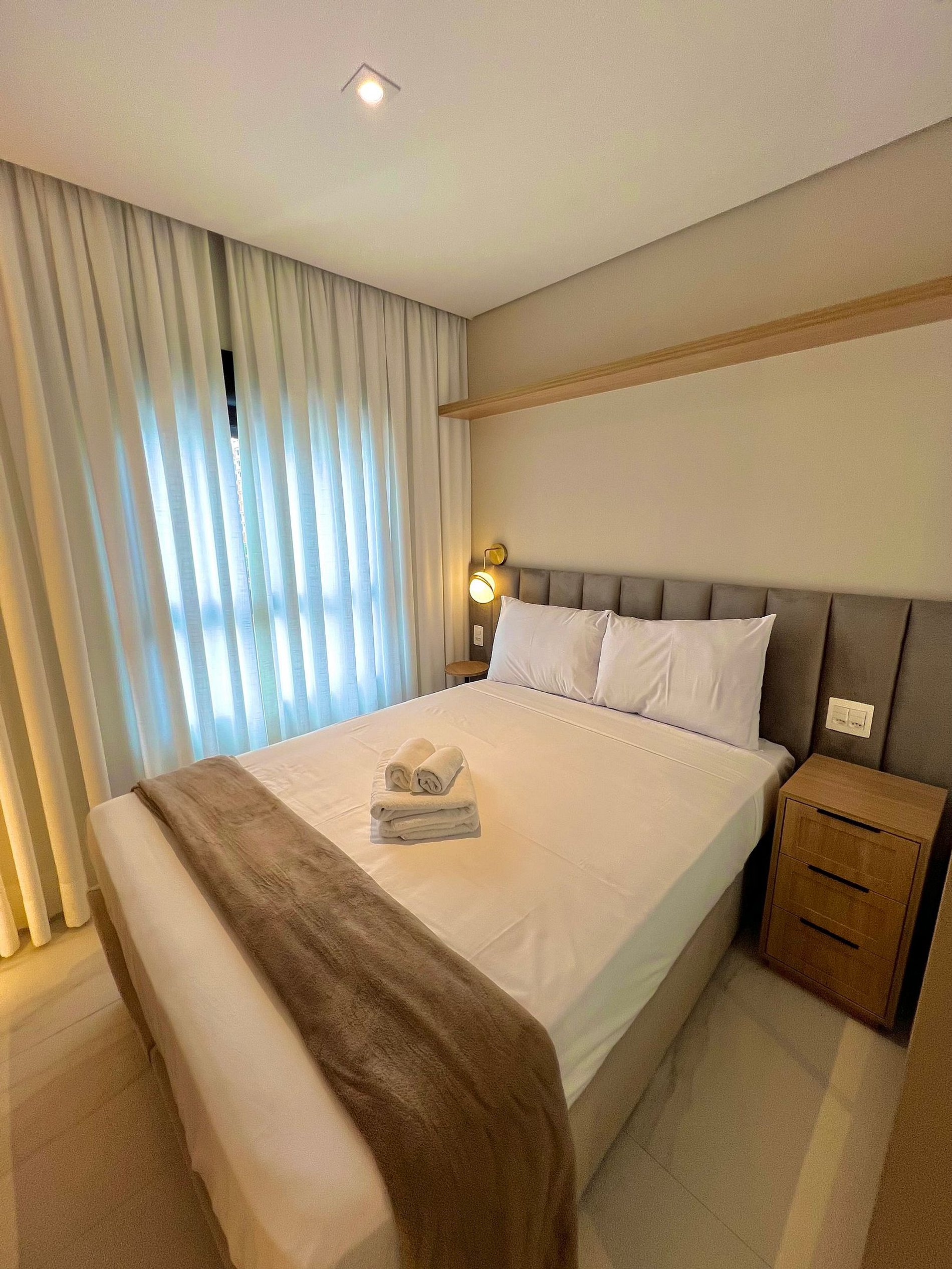 Apartamento completo, possui todos os utensílios de cozinha, roupa de cama e marcenaria planejada, tudo pensado para o seu conforto durante a hospedagem.