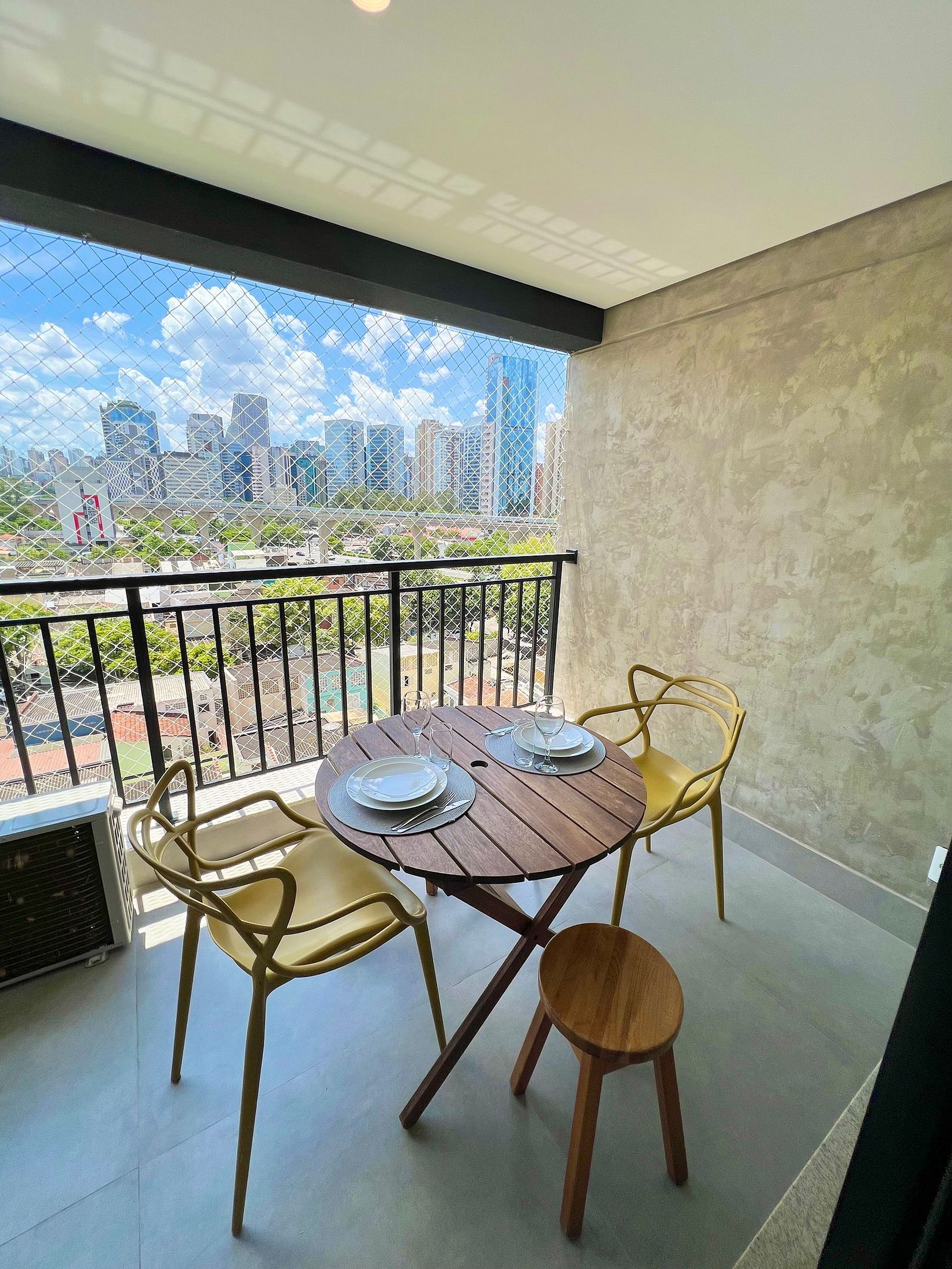 Para os momentos de relaxamento, aproveite a área de convivência e o lounge na cobertura, com vistas deslumbrantes da icônica Ponte Estaiada, especialmente encantadora ao pôr do sol.