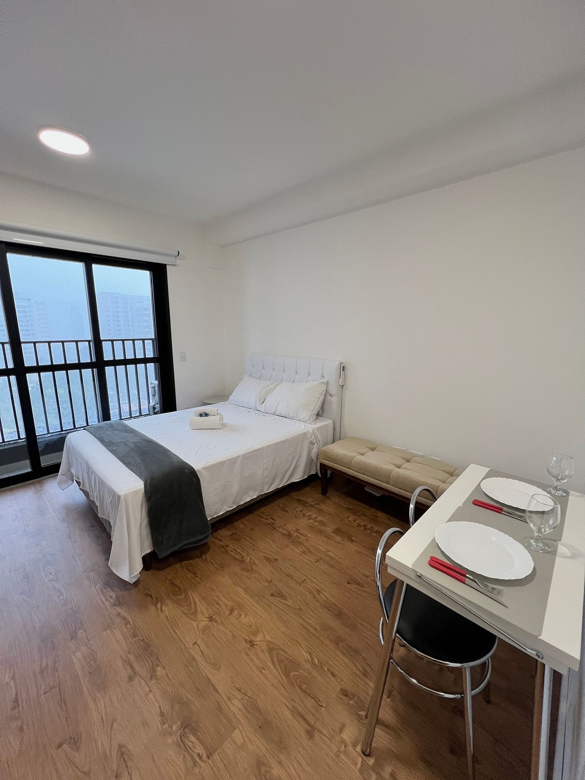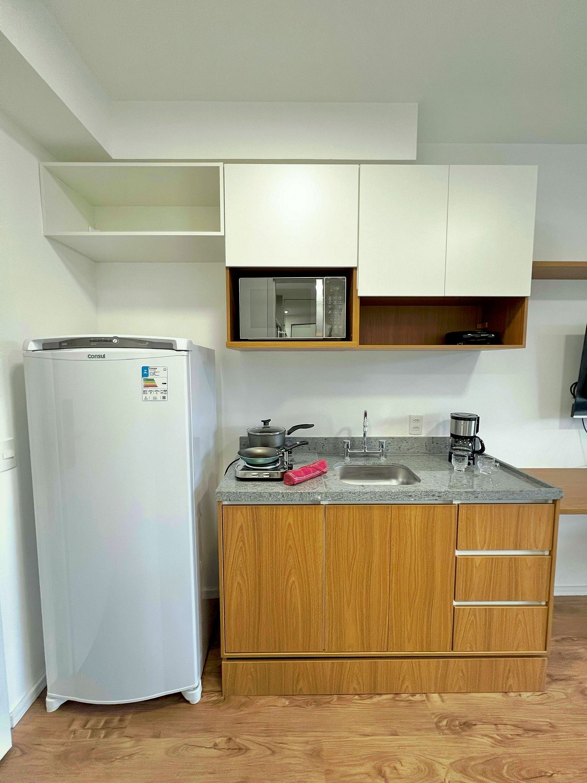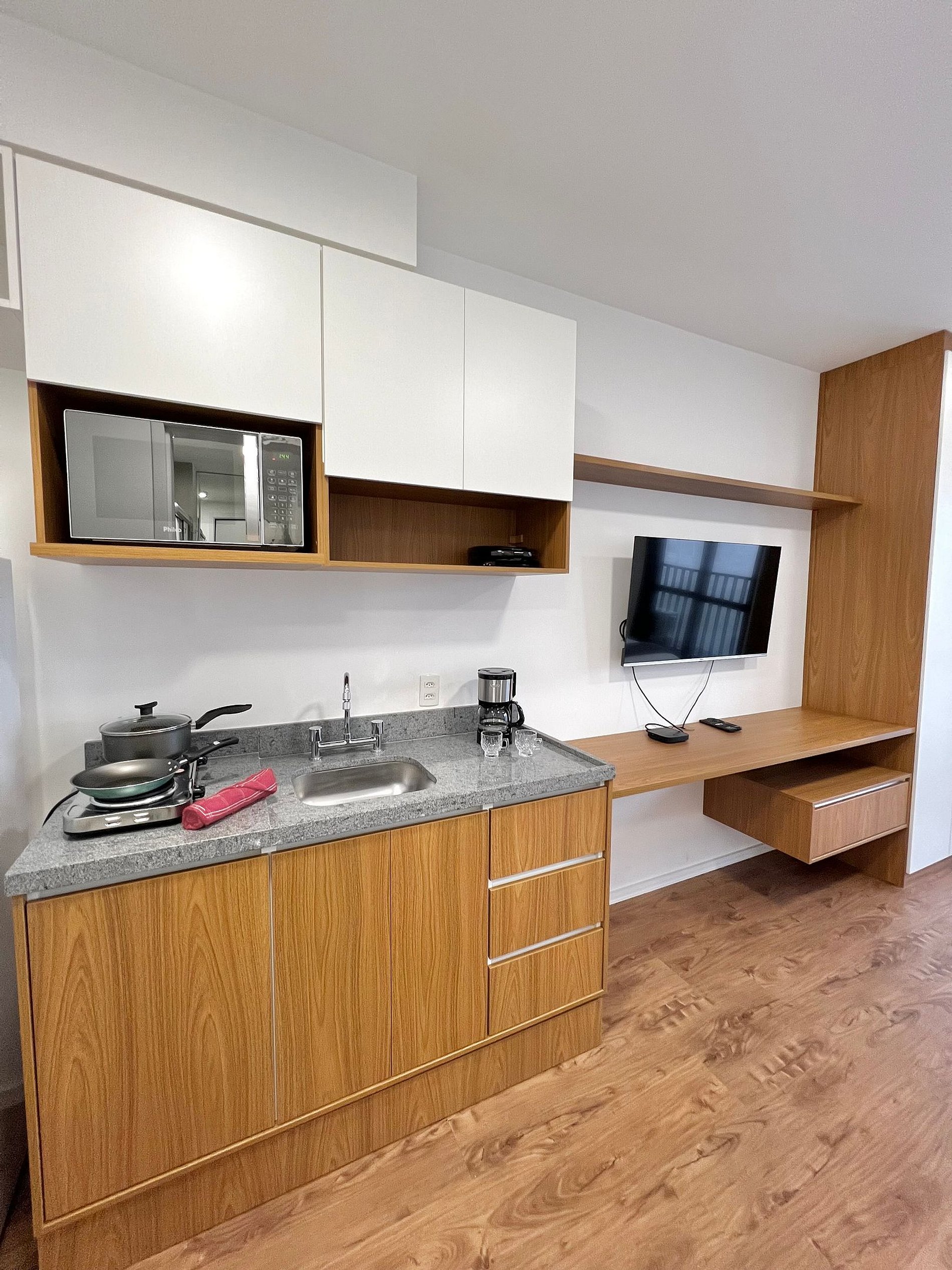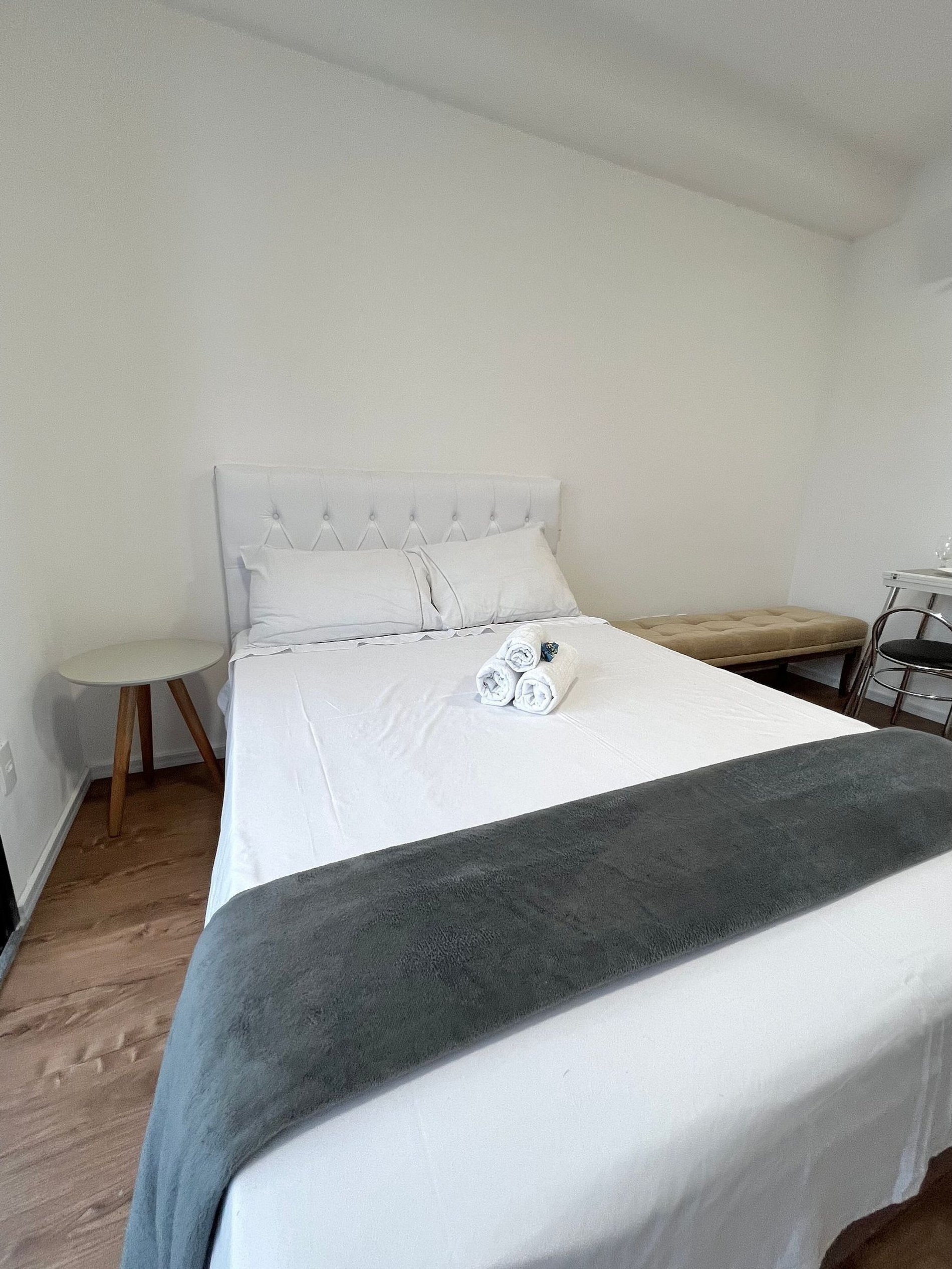 Apartamento completo, possui todos os utensílios de cozinha, roupa de cama e marcenaria planejada, tudo pensado para o seu conforto durante a hospedagem.