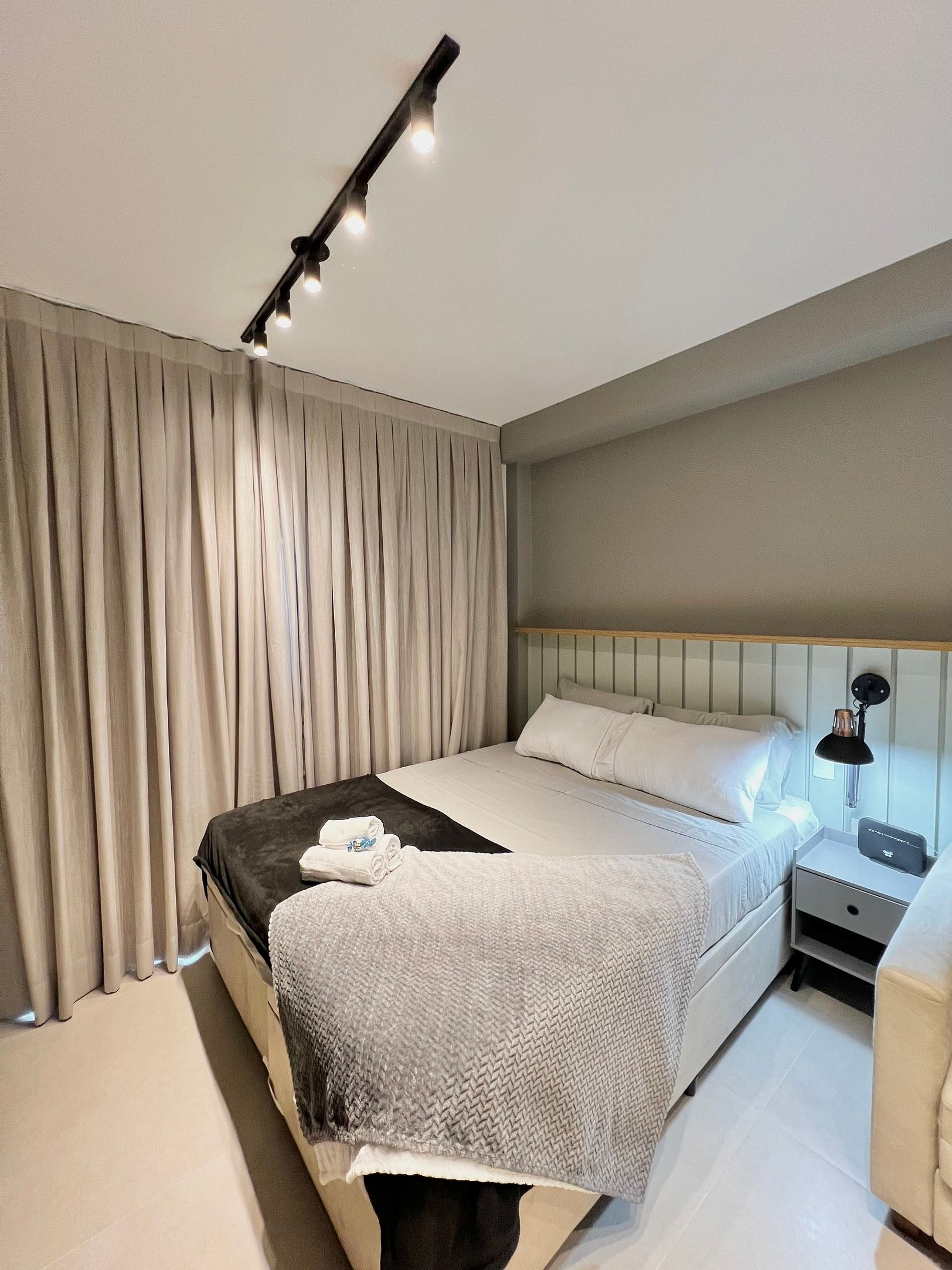 Apartamento completo, possui todos os utensílios de cozinha, roupa de cama e marcenaria planejada, tudo pensado para o seu conforto durante a hospedagem.