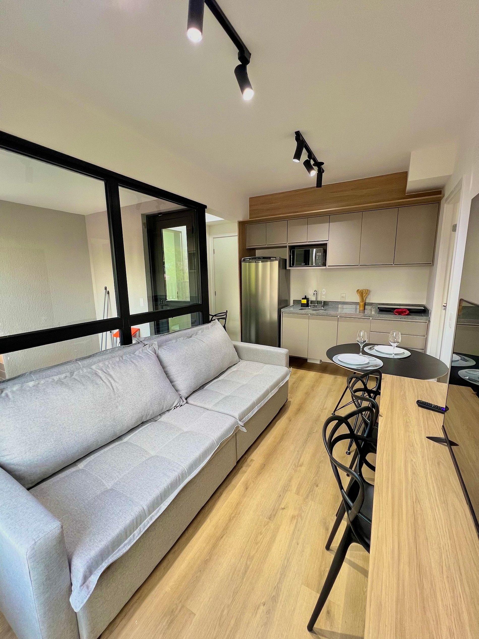 Apartamento completo, possui todos os utensílios de cozinha, roupa de cama e marcenaria planejada, tudo pensado para o seu conforto durante a hospedagem.