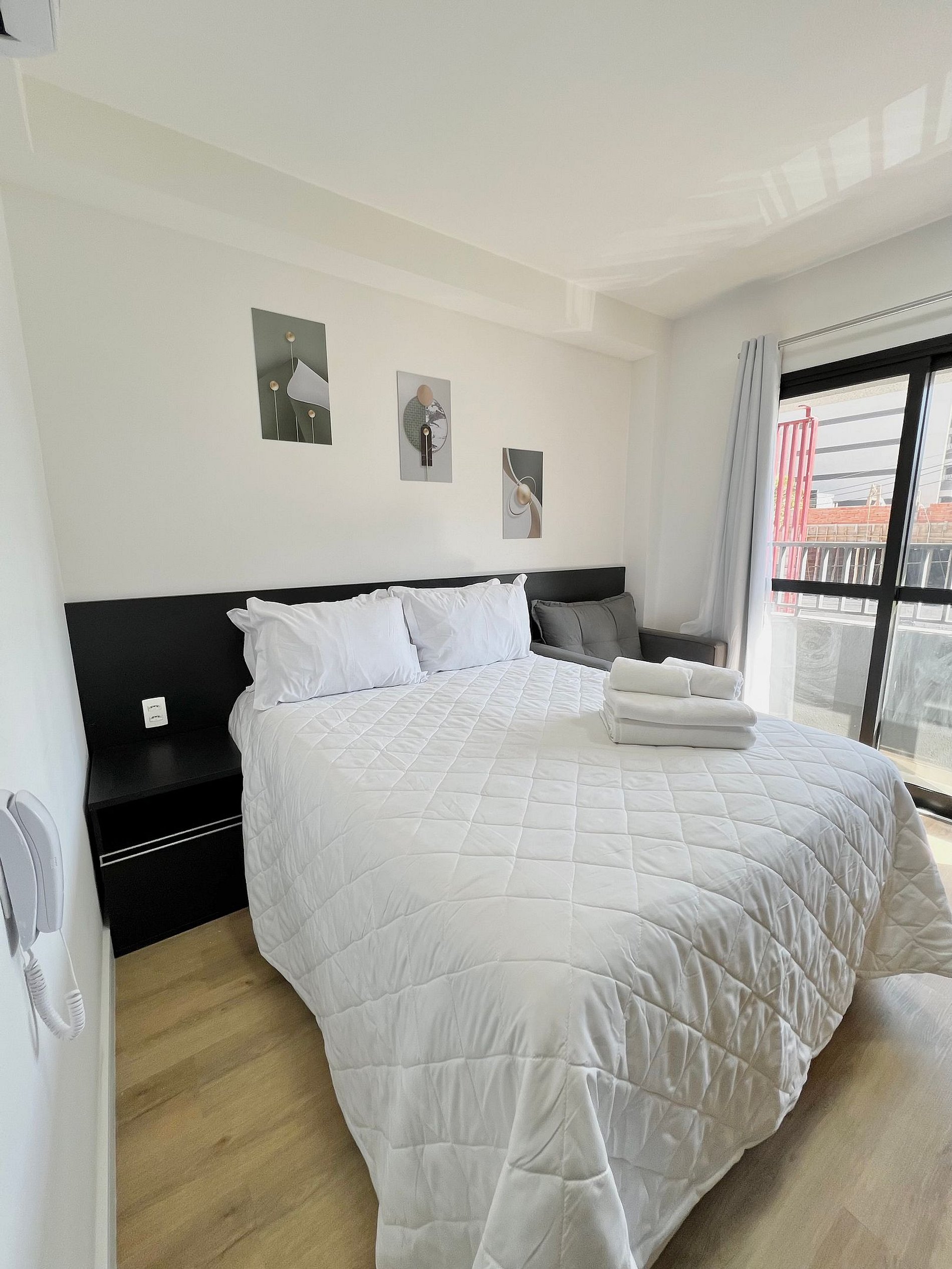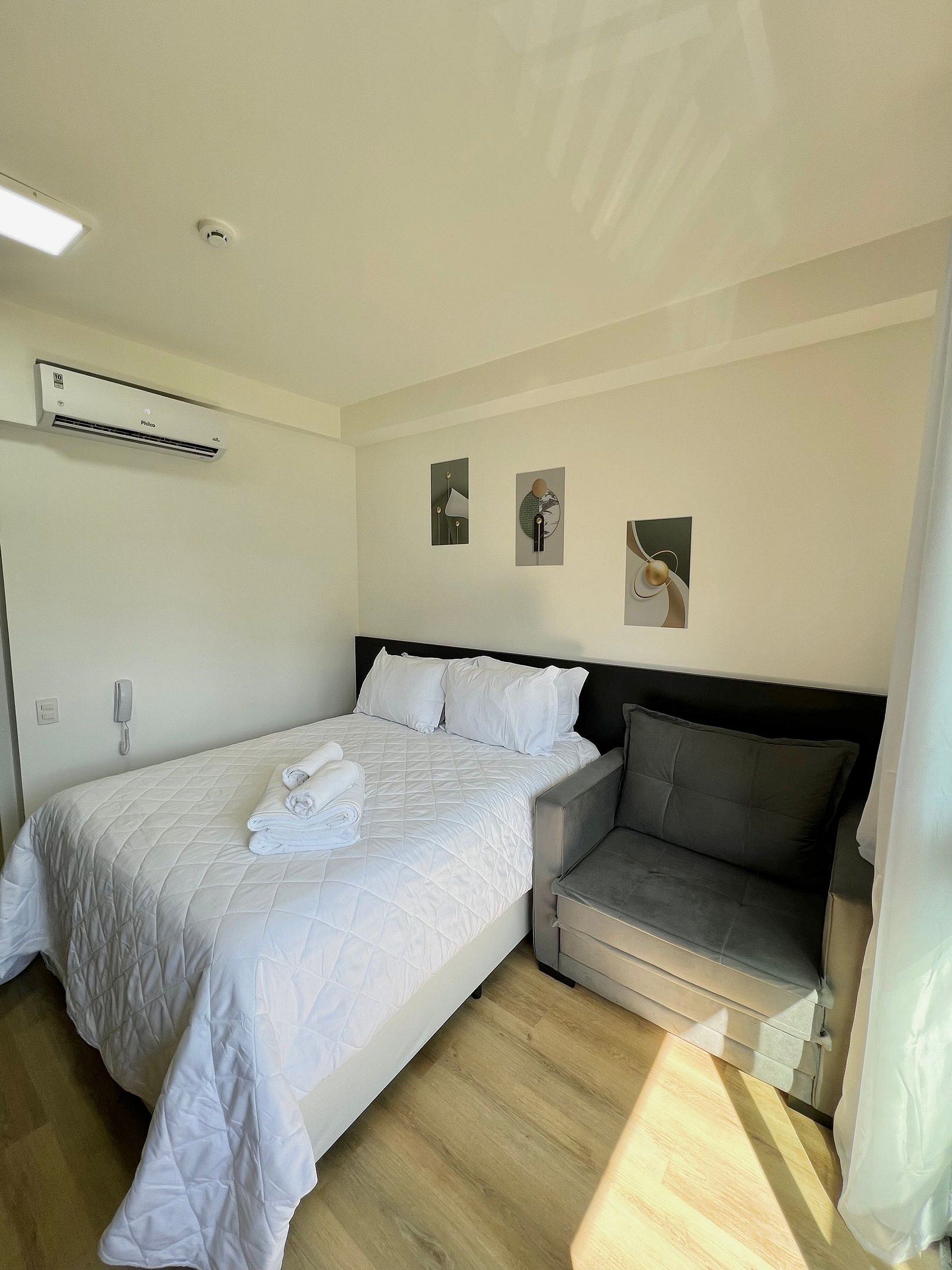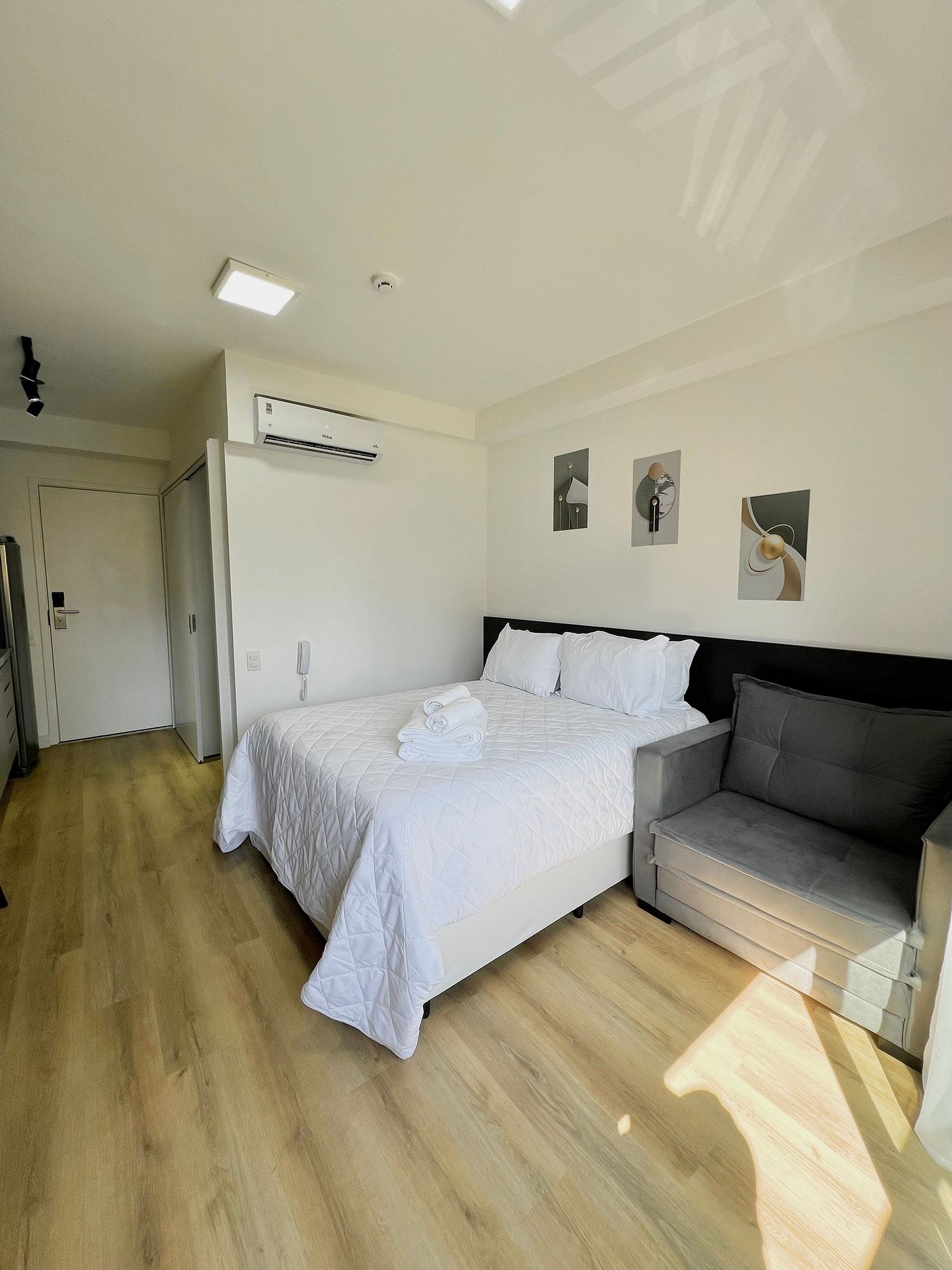 Apartamento completo, possui todos os utensílios de cozinha, roupa de cama e marcenaria planejada, tudo pensado para o seu conforto durante a hospedagem.