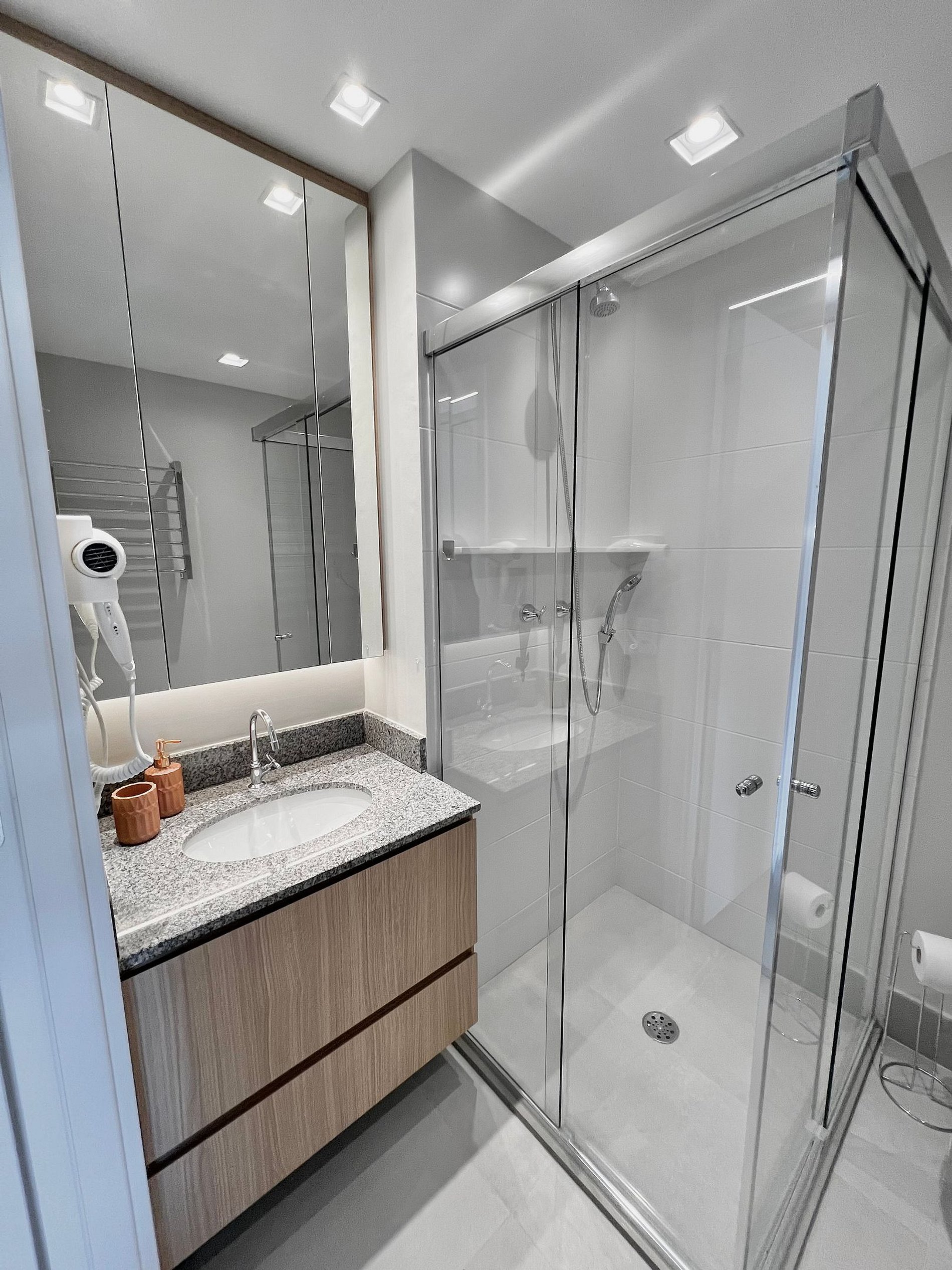 Apartamento completo, pronto para sua estadia com muito conforto e segurança, prédio moderno, com câmeras e acesso via cadastros registrados previamente.