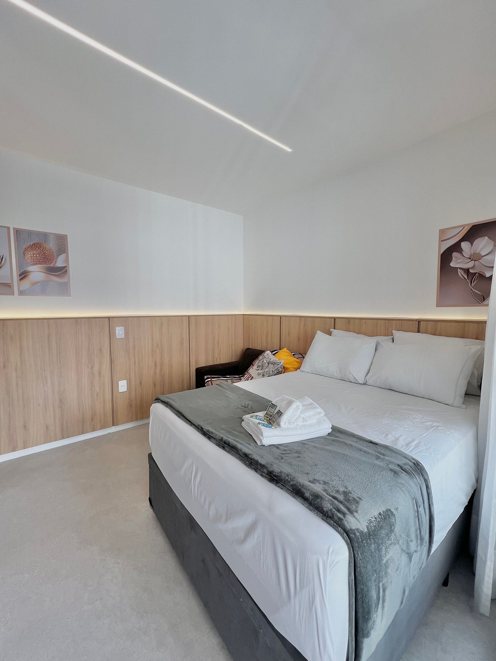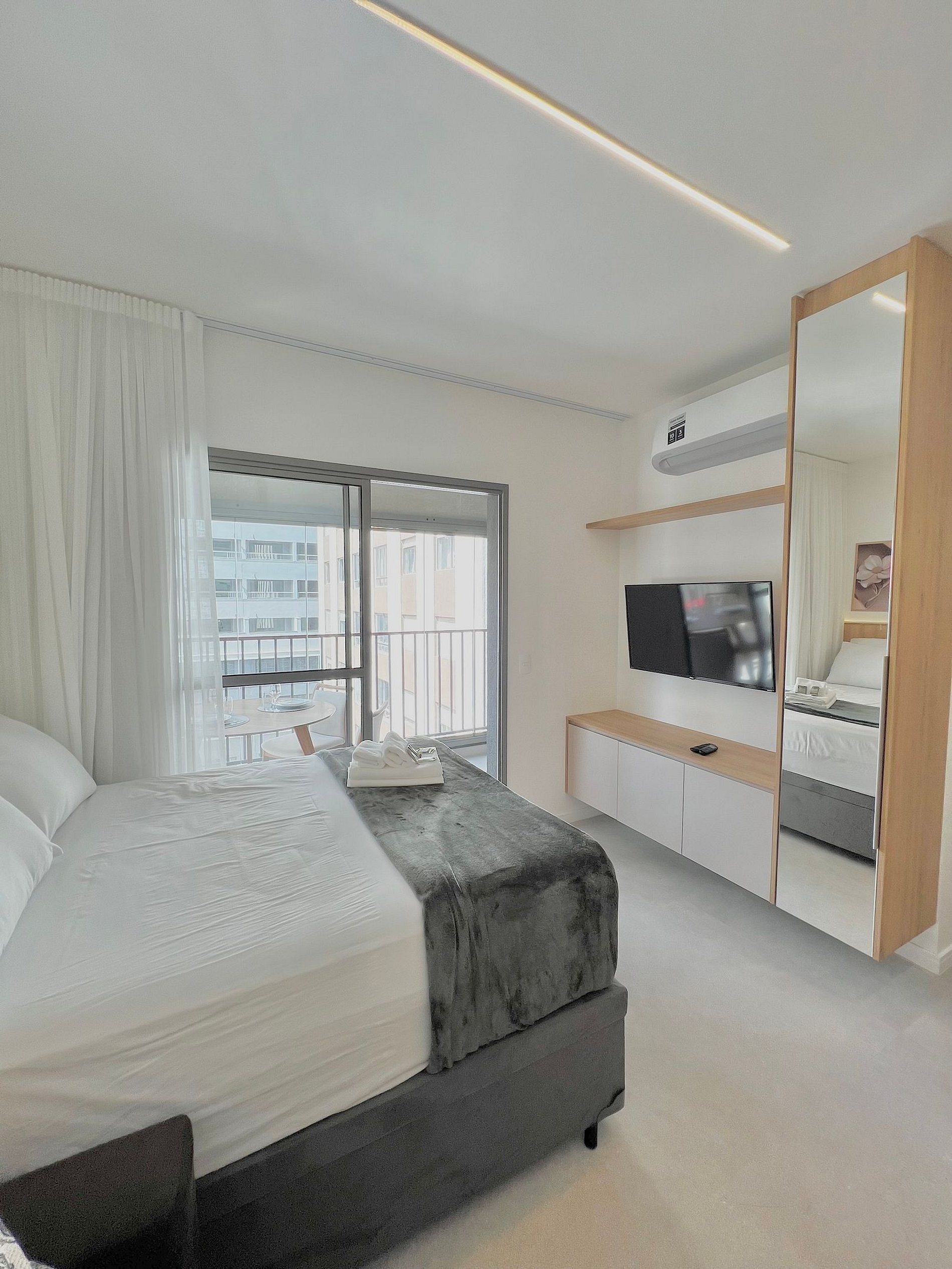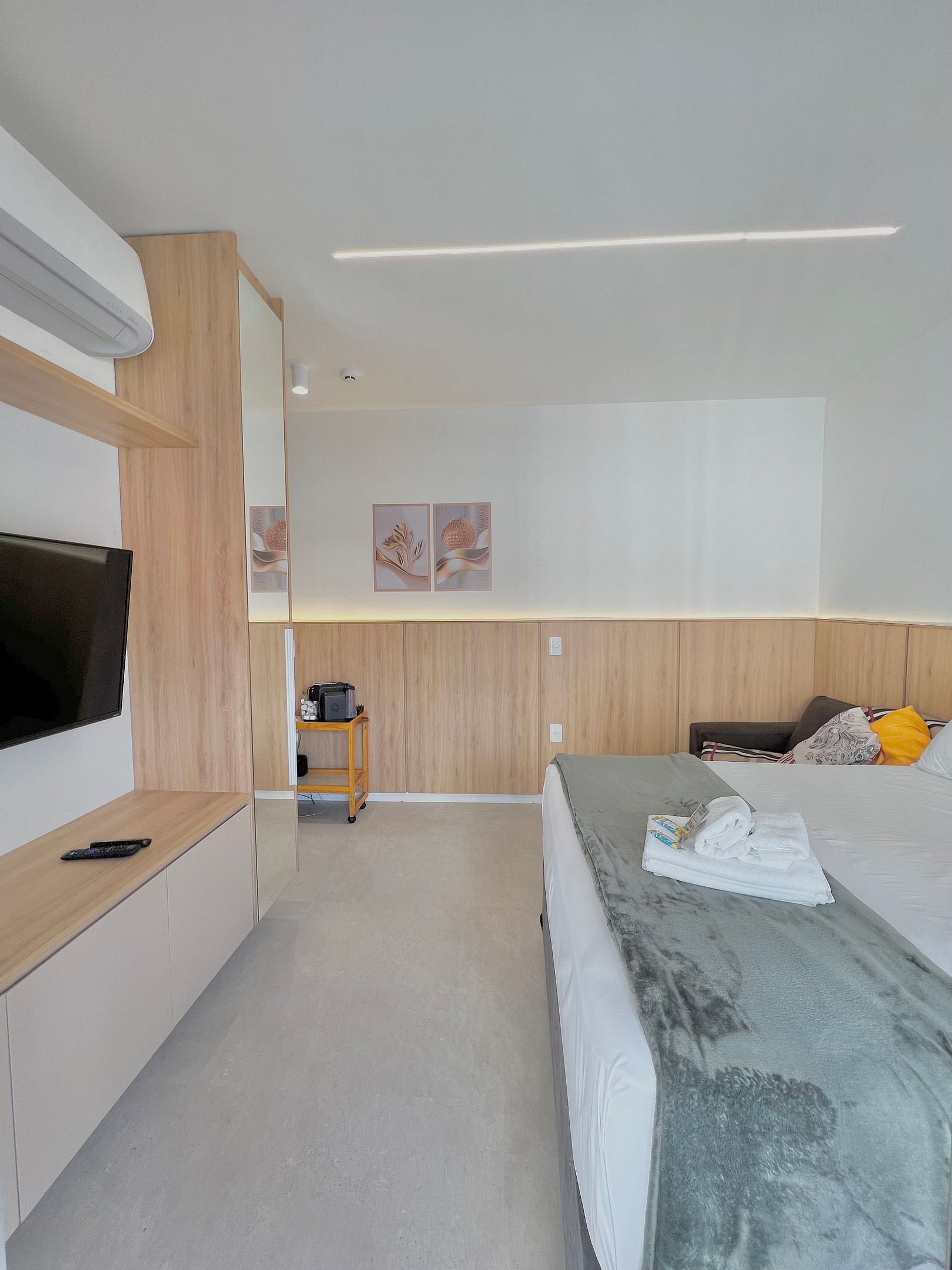 O Studio possui tudo para sua experiência e conforto, com uma cama casal e um sofá cama super confortáveis, o apartamento está completamente mobiliado, pensado na sua comodidade e dia a dia, contém todos os itens necessários na cozinha, como forno microondas, airfryer, cooktop, liquidificador e cafeteira elétrica.