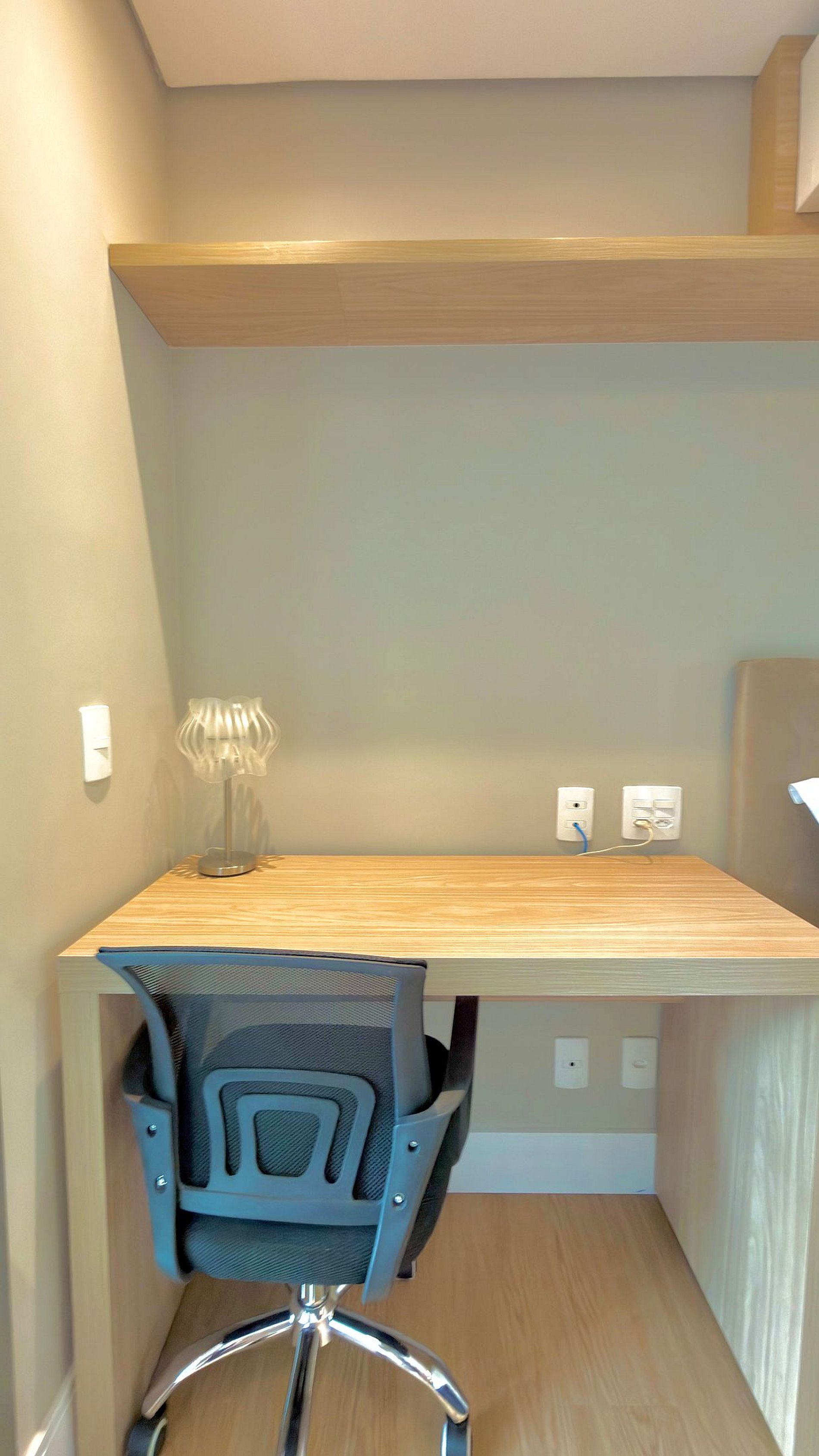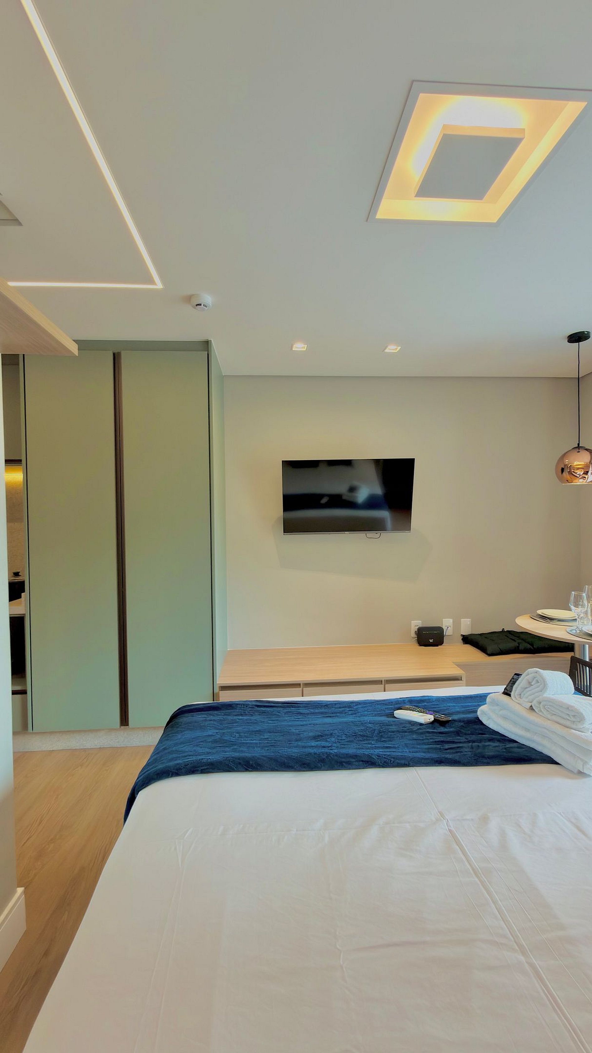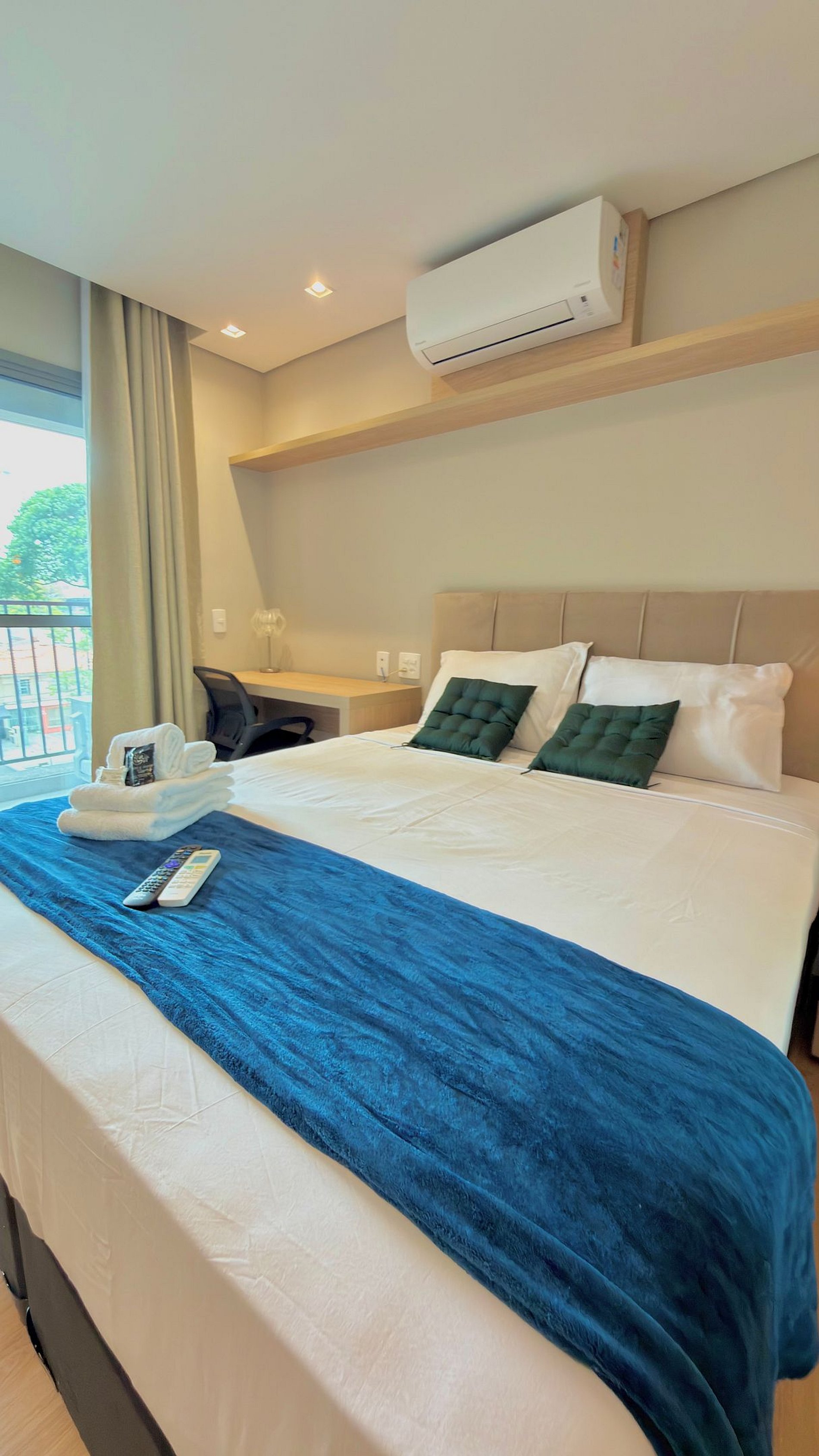 O Studio possui tudo para sua experiência e conforto, com uma cama queen confortável, o apartamento está completamente mobiliado, pensado na sua comodidade e dia a dia, contém todos os itens necessários na cozinha, como forno microondas, airfryer, cooktop e cafeteira elétrica.