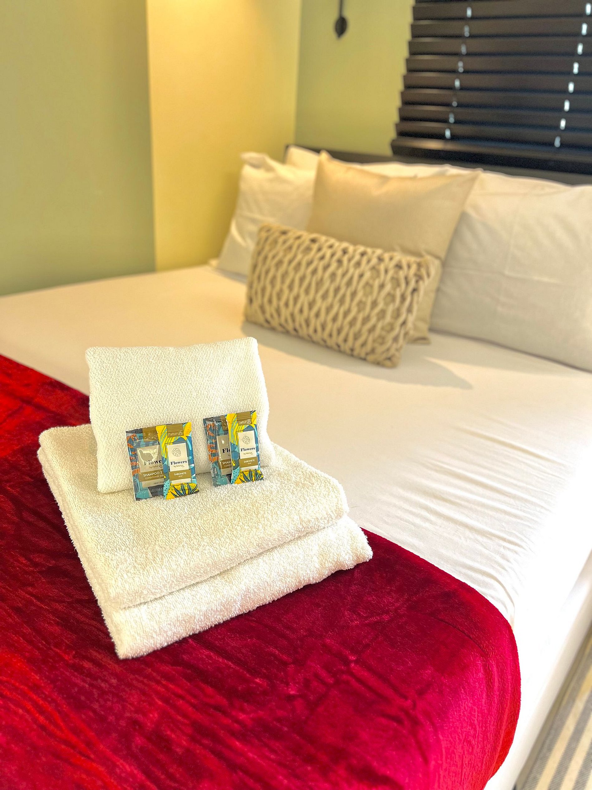 Conforto garantido: cama de casal com roupa de cama premium, ar-condicionado, TV Smart, internet de alta velocidade, área de trabalho e sofá aconchegante.